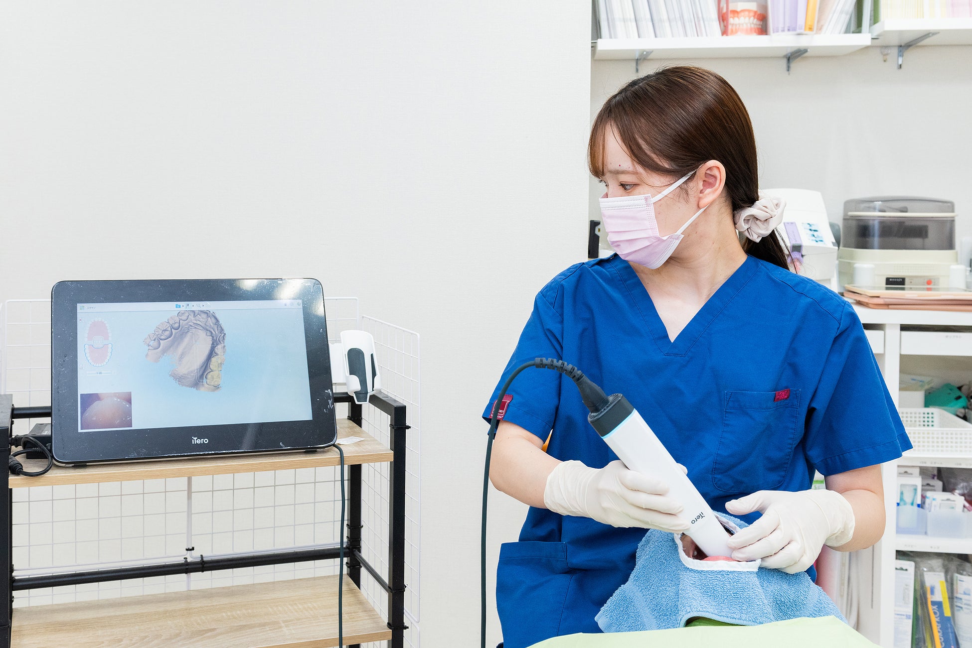 口腔内スキャナーには iTero Lumina、iTero Element 5D、Aoralscan 3 を採用し、従来の型取りと比較して、より快適かつ高精度なデジタル印象採得を実現しています。