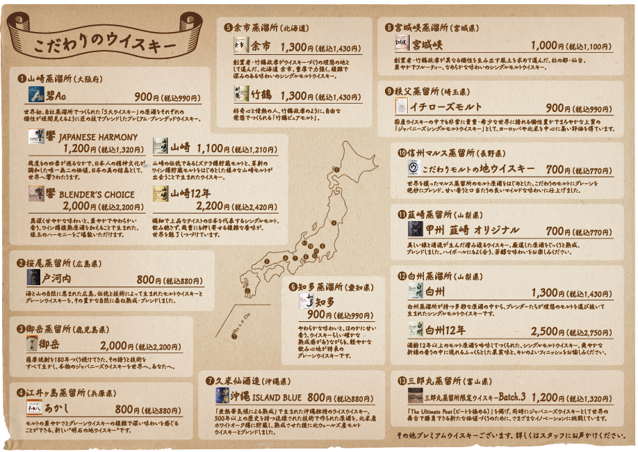 ~馬肉や地鶏に合わせるお酒はこだわり抜いたジャパニーズウイスキーの数々~