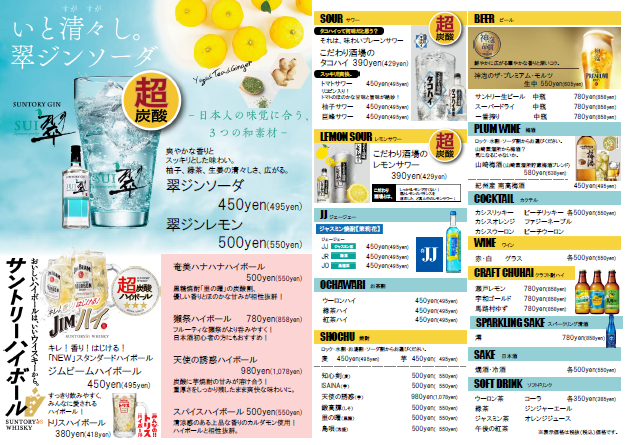 種類豊富なドリンクメニュー