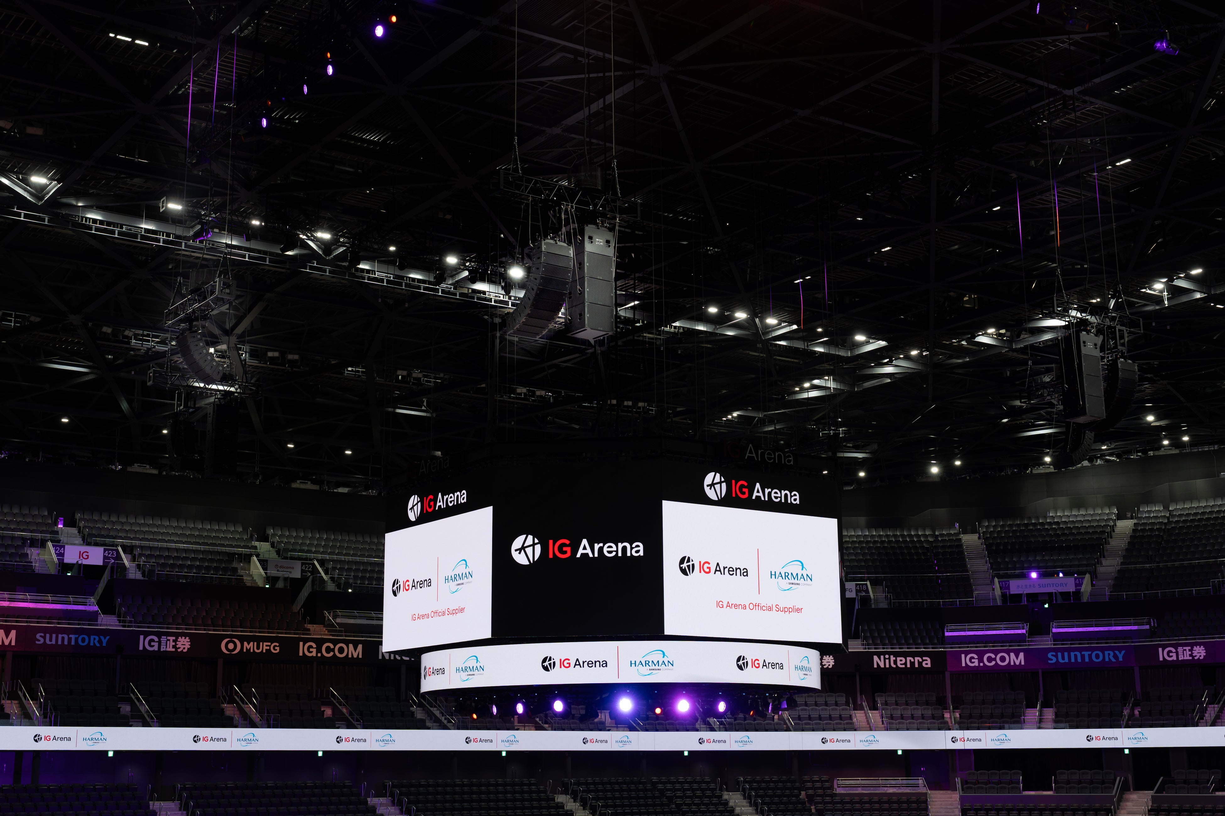 プロフェッショナル音響・照明ソリューションを世界的に提供するハーマンは、IGアリーナのオフィシャルサプライヤーとして、JBL Professional VTXシリーズ・ラインアレイスピーカー、Crownパワーアンプ、BSSデジタルシグナルプロセッサーをはじめとするハーマングループの最先端音響機材に加え、Martin MAC VIPER XIPおよびMAC Aura PXLといった照明器具を導入し、アリーナ全体の最新鋭スピーカーシステムを中心とした音響環境を構築しています。