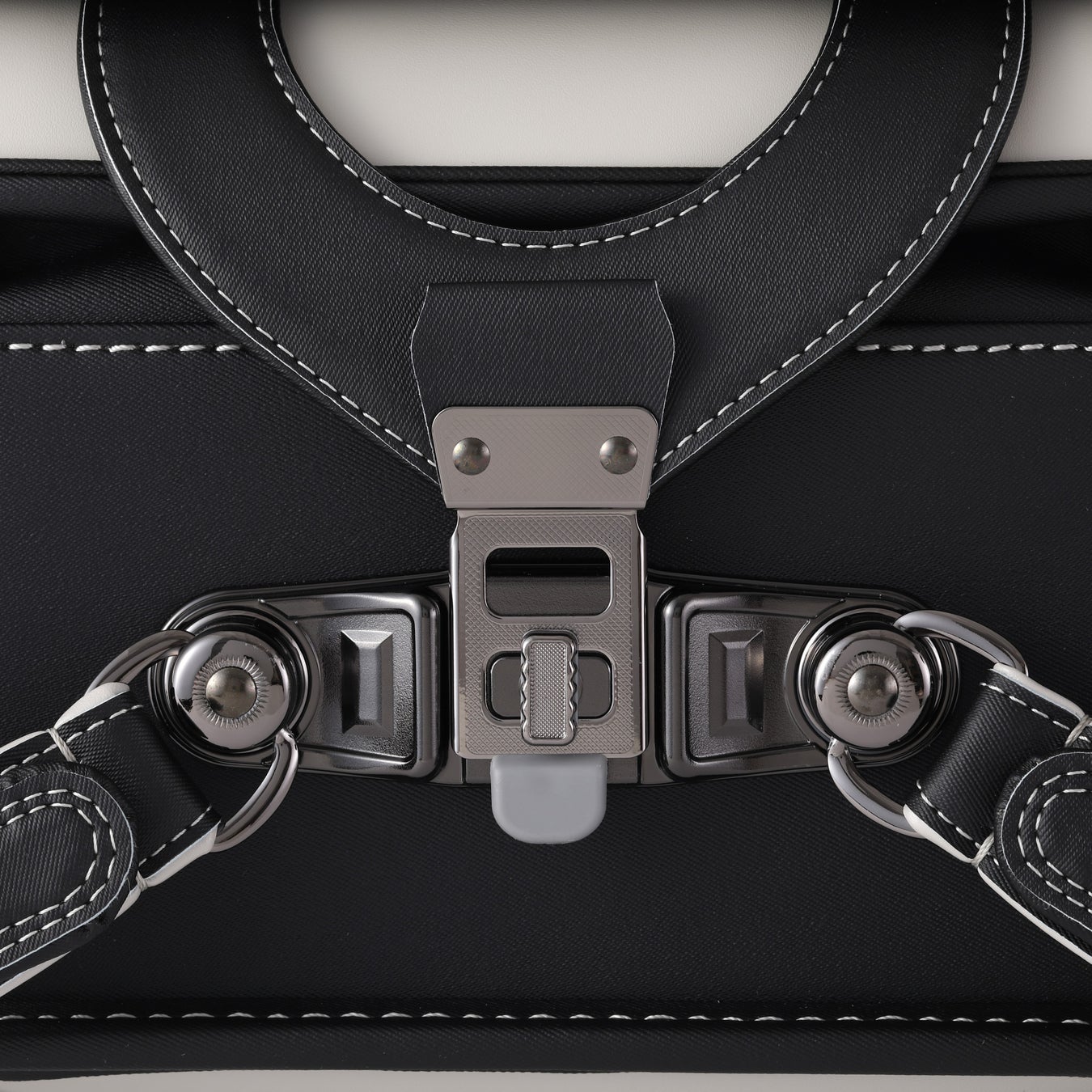 前ポケットは前折れタイプで中身の出し入れが便利です。金具類等をブラックに統一