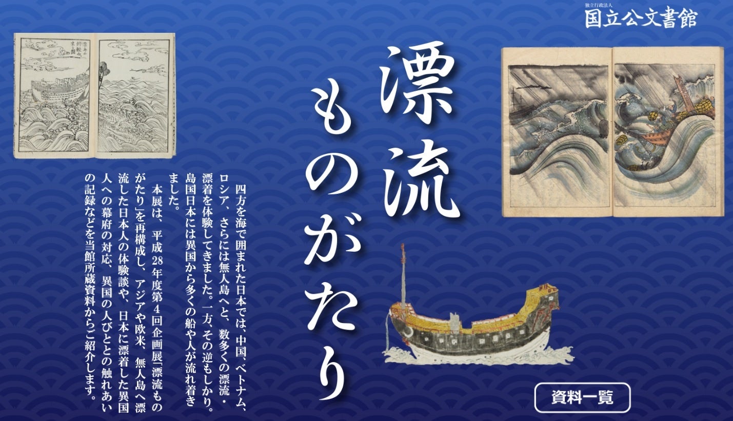 デジタル展示「漂流ものがたり」:https://www.archives.go.jp/exhibition/digital/hyoryu/index.html