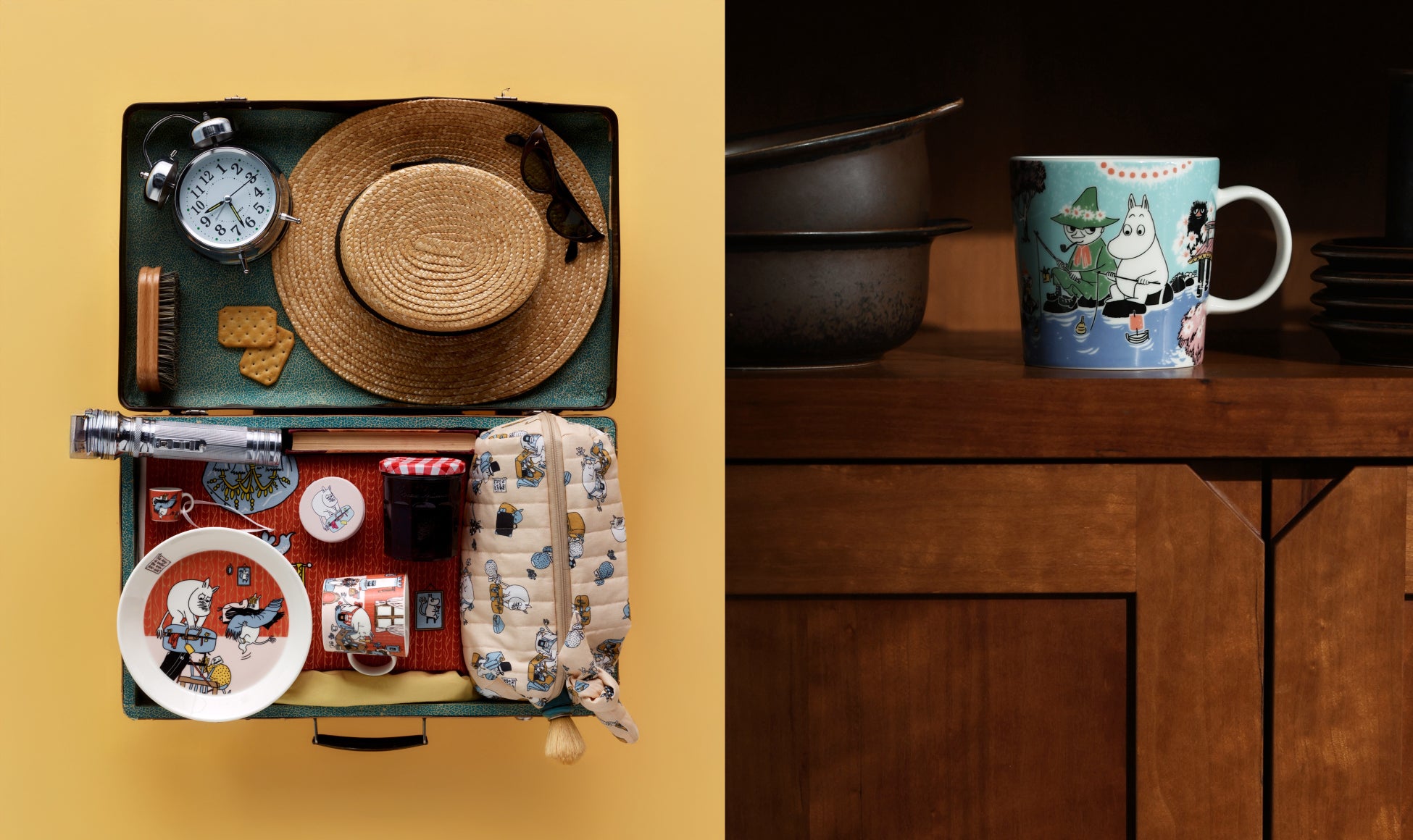 ムーミン アラビアは本コレクションを通して、心弾むサマーバケーションの始まりと、日常の何気ないひとときに宿る穏やかな幸せという、対照的な情景に広がるムーミンの世界を描き出します。