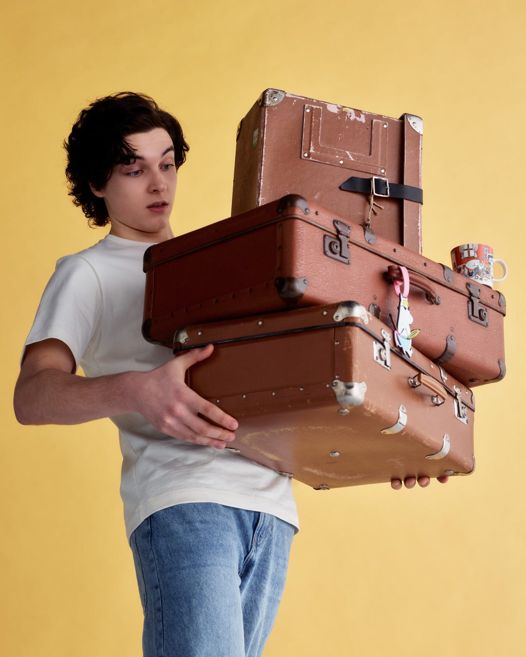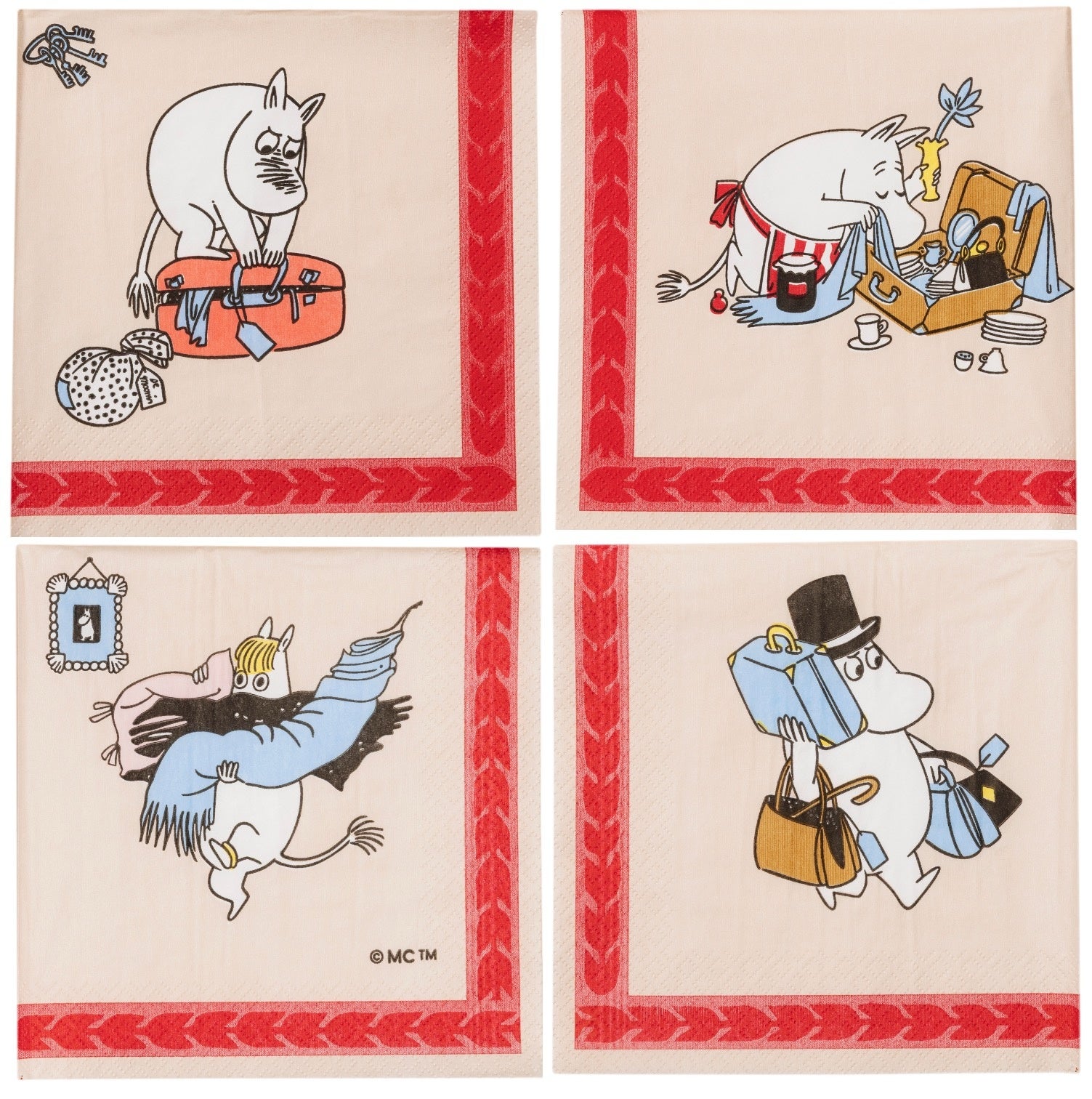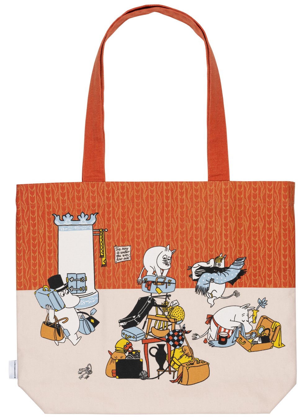 本コレクションでは、旅の出発前の慌ただしくも心躍る準備のひとときを表現し、はち切れそうなスーツケースの上で跳ねているムーミンや、必要なものを慎重に選ぶムーミンママなど、家族それぞれの個性が生き生きと描かれています。さらに一部のモチーフには、コミック『ムーミン、海へいく』(1959年)の要素も取り入れられています。