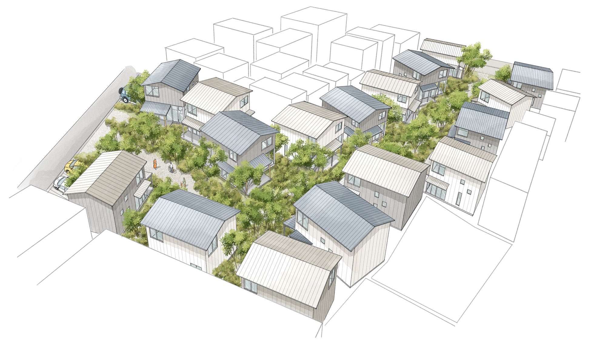 のびのびとした地方暮らしに憧れつつ、東京での仕事や暮らしを手放すのは難しい──。本プロジェクトは、緑豊かな環境と都市のアクセス性を両立し、かつ“つくり手として家に関わる”ことができる新たな住宅のあり方を提示します。