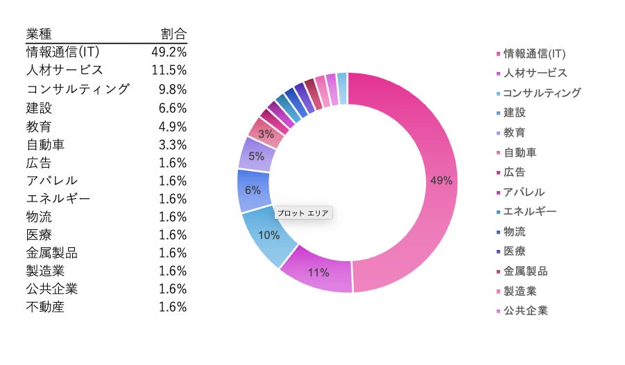 また、「人材サービス」(11.5%)、「コンサルティング」(9.8%)といった専門職系業種も多く登録しており、IT・人材領域を中心にグローバル採用のニーズが拡大しています。