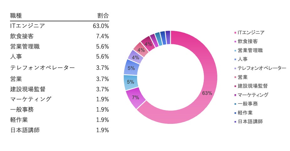 新規登録求人のうち、63.0%がITエンジニア職で占められ、AI・Web3・DX推進に即戦力となる外国人エンジニアの採用が加速しています。