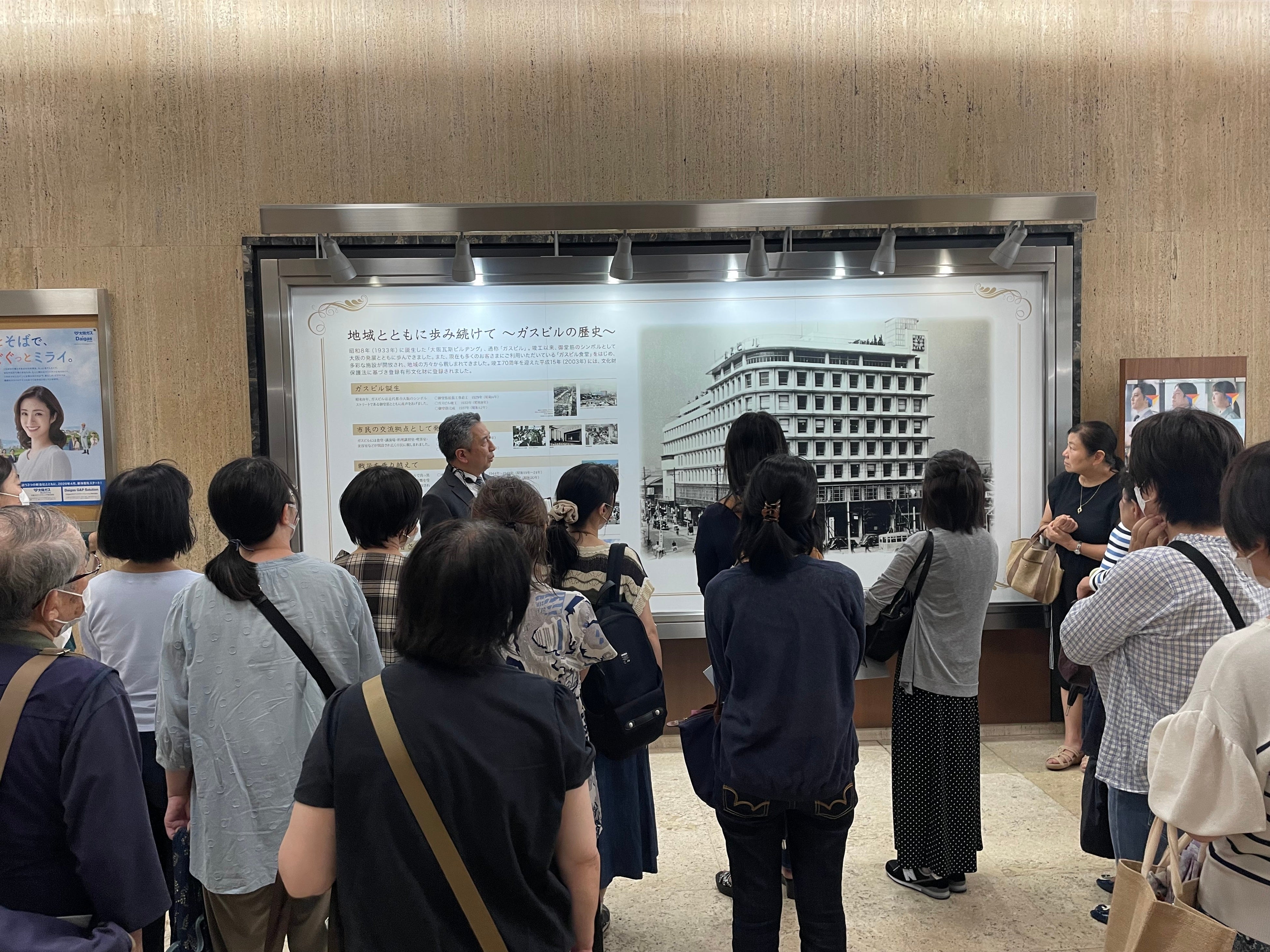 1933年に、「瓦斯料理講習室」が開設された「大阪ガスビルディング」の歴史を紹介するミニツアーを開催しました。竣工当時から変わらない建物の外観や1階エレベーターホールなど、大阪ガスビルディングが積み上げてきた90年以上を振り返る機会になりました。