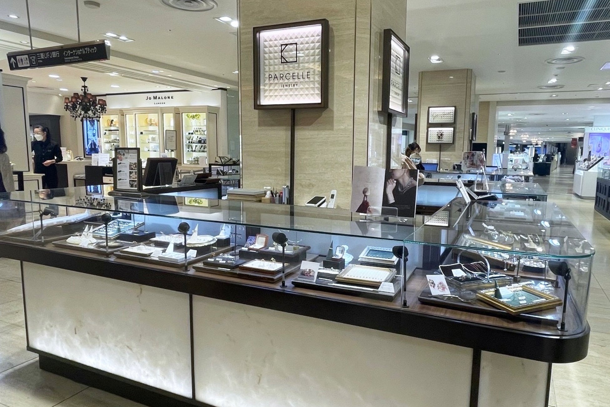 パーセル ジュエリーなんば店(高島屋大阪店1階)は、開店以来何度か場所を変え、現在の広々としたスペースに落ち着きました。