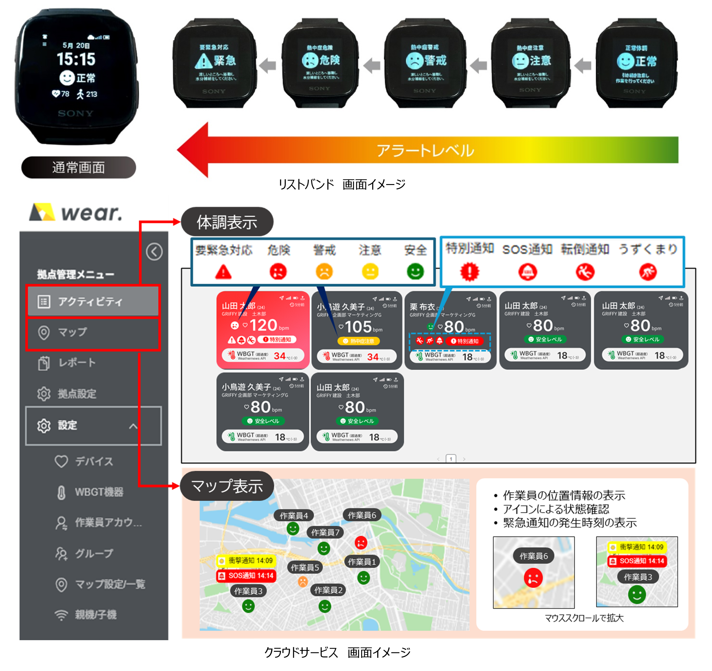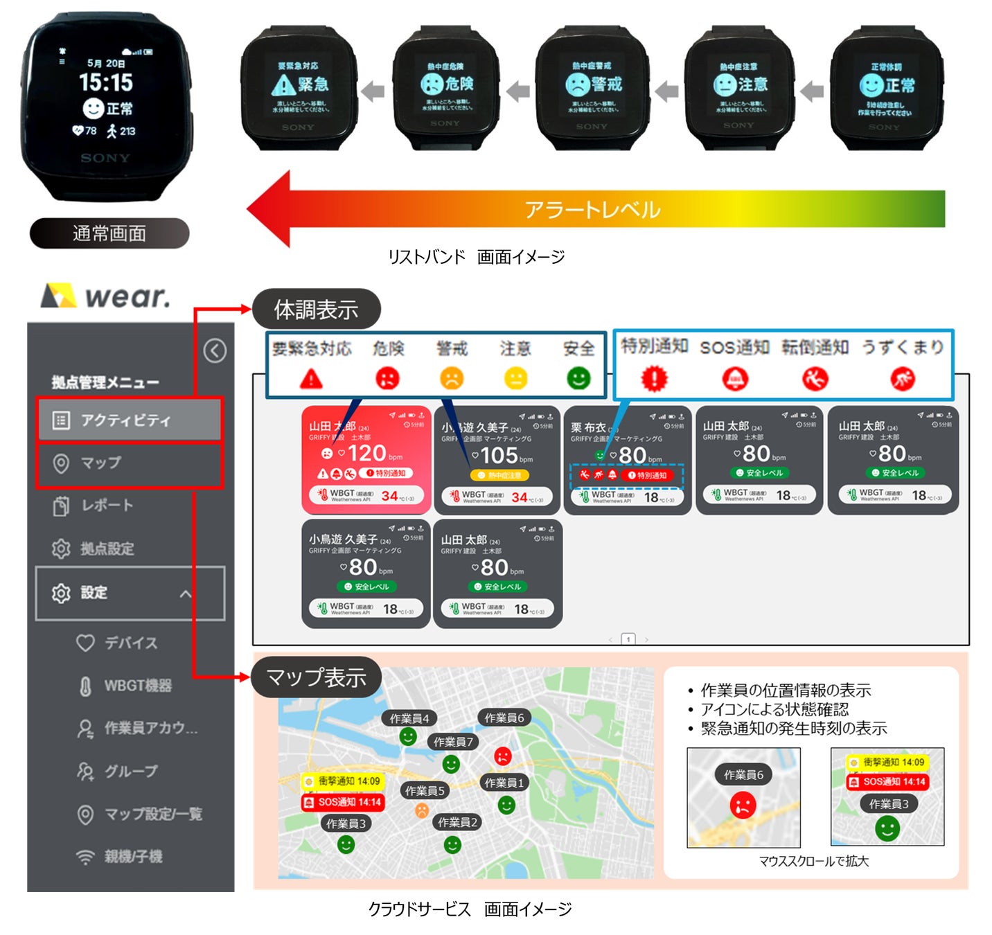 これら新機能の実装により、さらなる現場作業員の安全性向上と、安全管理の効率化を実現します。
