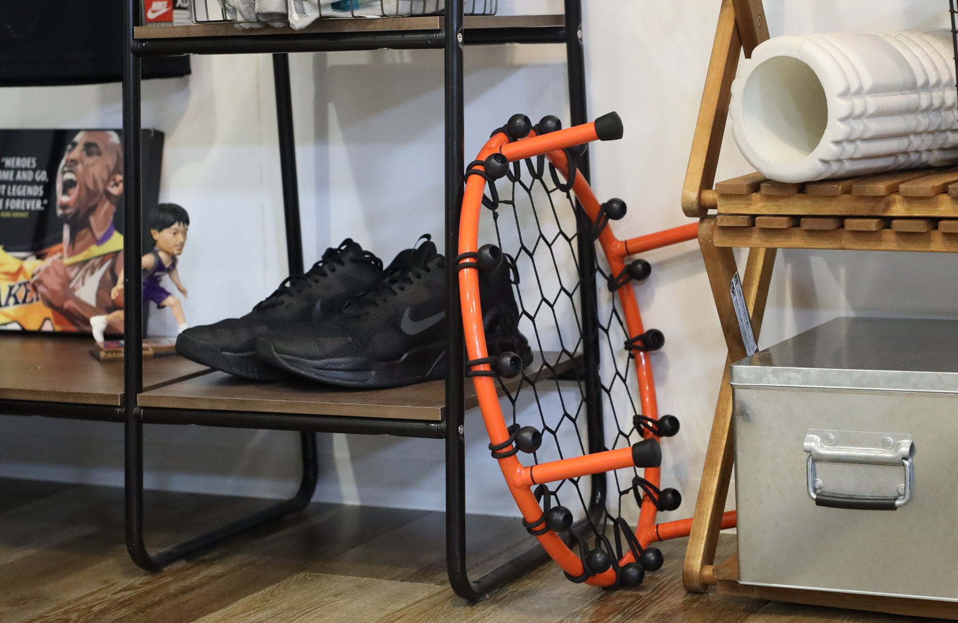 スチール製の4本足フレームで構成され、重心が安定し耐久性が備えられています。室内サイズでコンパクトな設計でありながら、適度な重量があるため、使用中も安定感を保ち、安心してドリブル練習に集中できます。