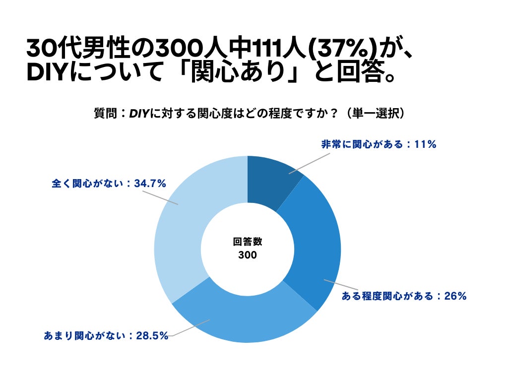 30代男性の300人中111人(37%)が DIYについて「関心あり」と回答【DIYに関するアンケート】