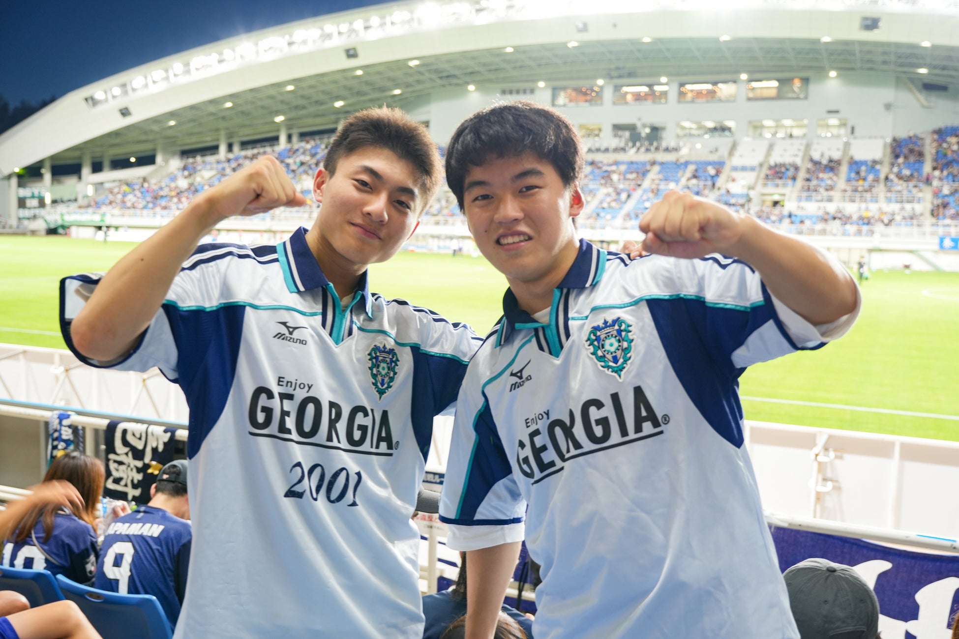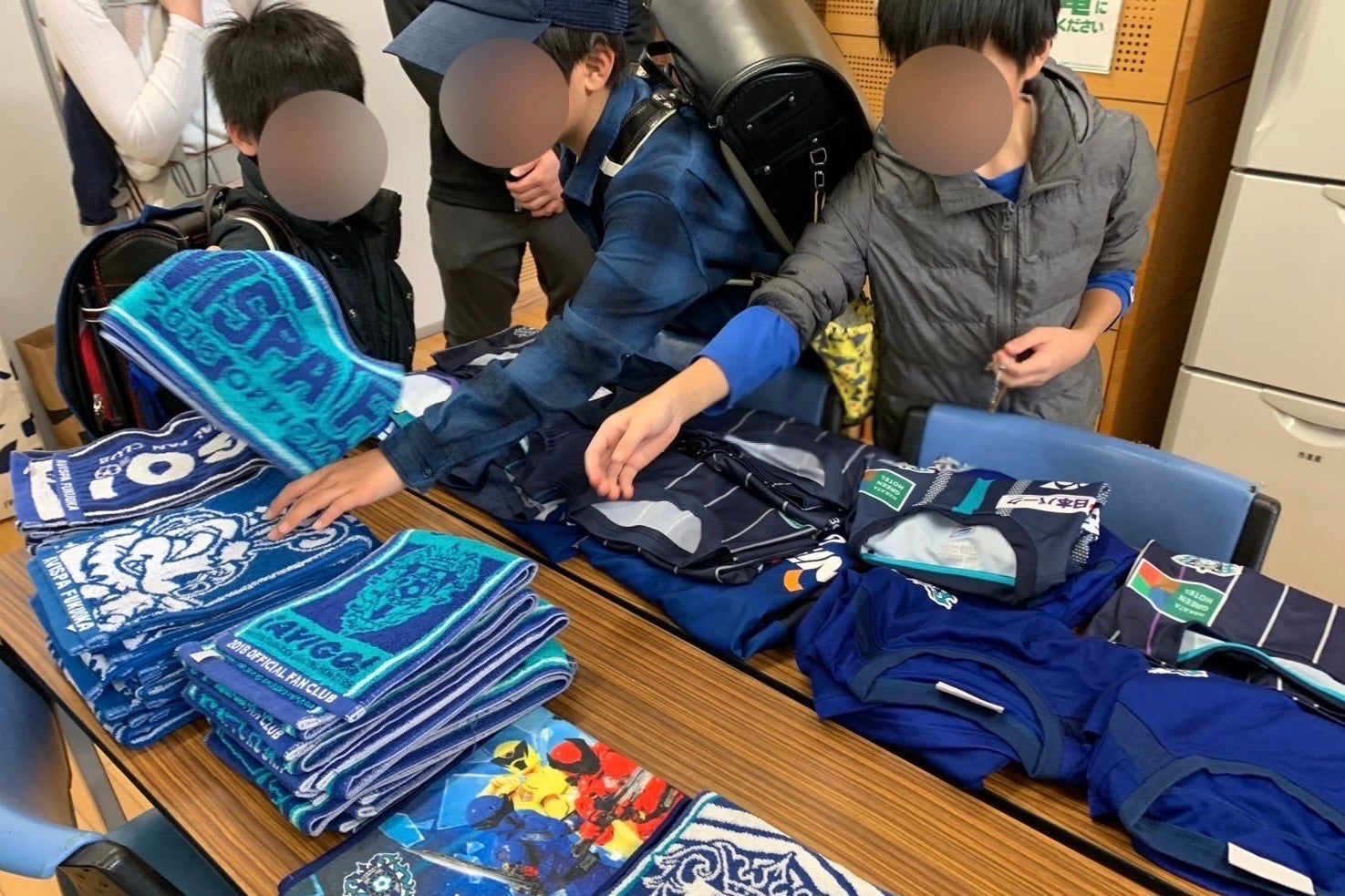 もらったユニフォーム・タオマフを使ってアビスパの試合を見に行った。とても楽しかった。(ユニフォーム寄贈先児童)