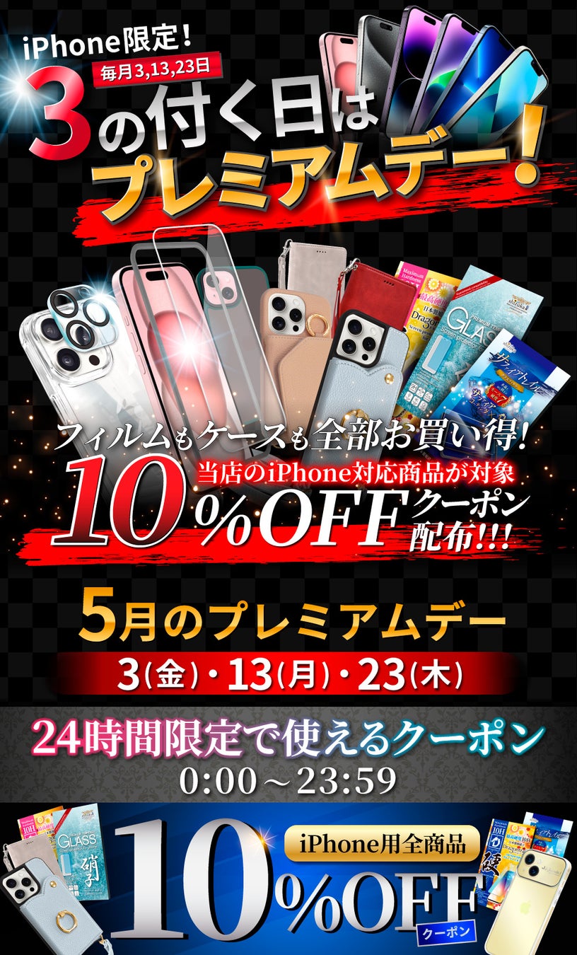 iPhone商品限定のお得なクーポンでフィルムもケースも全部がお買い得な1日!