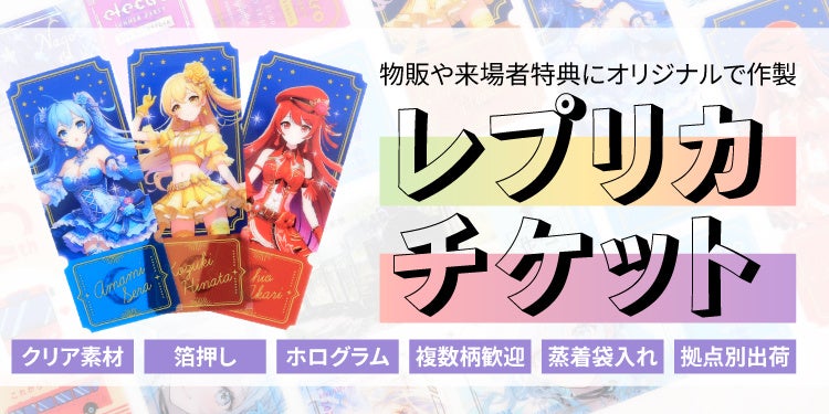 ノベルティOEMを手掛ける大同至高株式会社の「レプリカチケット」が累計受注枚数50万枚を突破。クリア感が可愛い、物販や来場者特典に最適なコレクションしたくなるチケット風カードです。