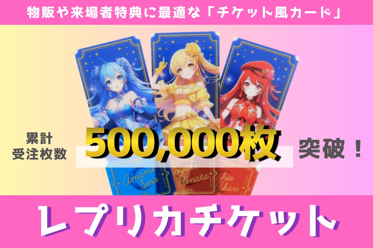 「レプリカチケット」が累計受注枚数50万枚を突破いたしました。ライブやコンサートの電子チケット化が進む中、形に残るレプリカチケットは物販や来場者特典として多数ご採用いただいています。