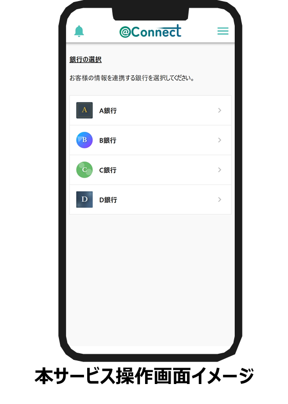 本サービス名には、「@Connect(アットコネクト)」という名称を採用しました。「@」は“場所”を示し、顧客と金融機関が集う接点としての場所を表しています。一方、「Connect」は“金融機関と顧客をつなぐ”という意味を持ち、サービス上で双方を結ぶ架け橋になりたいという意味を込めています。