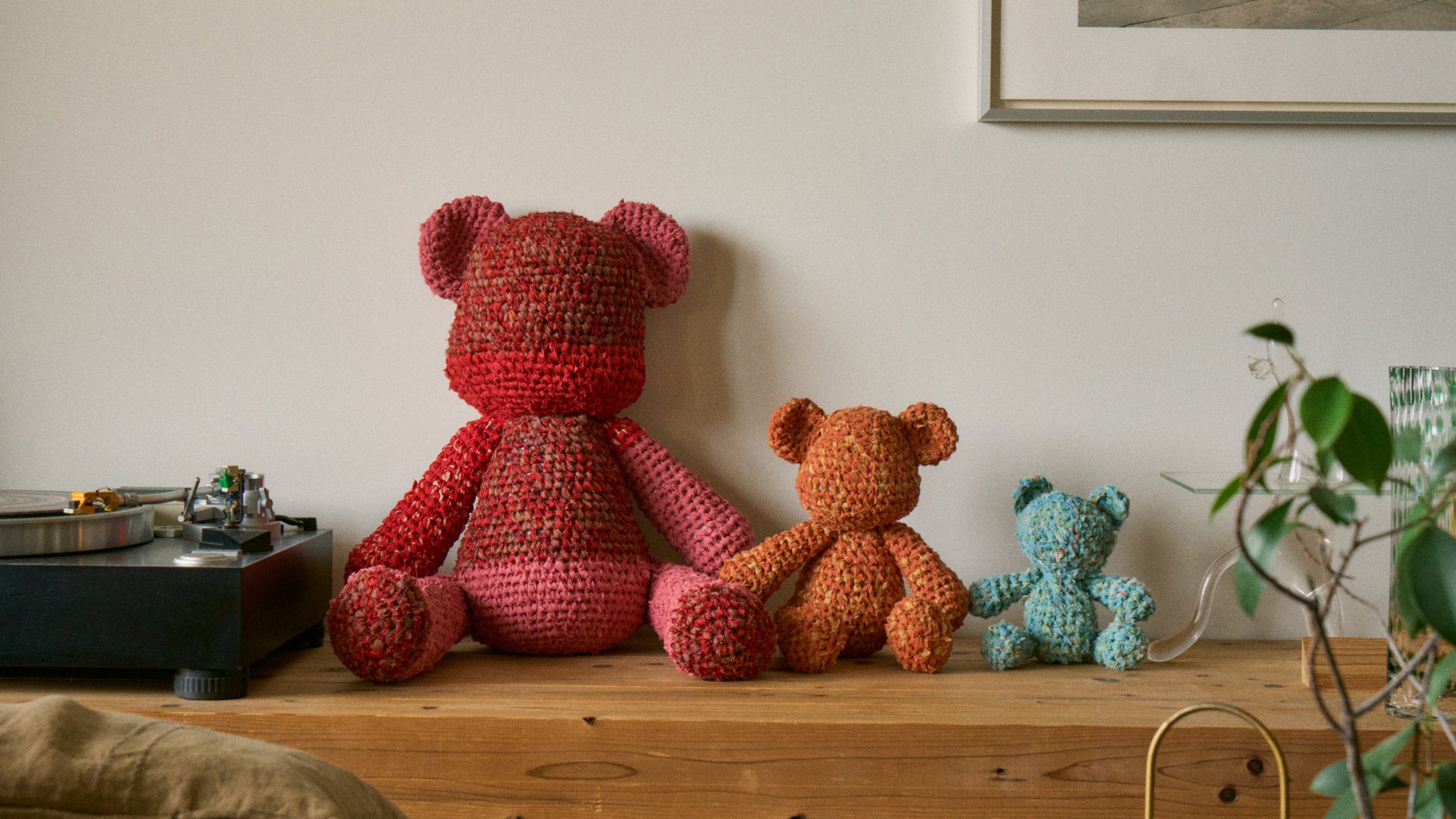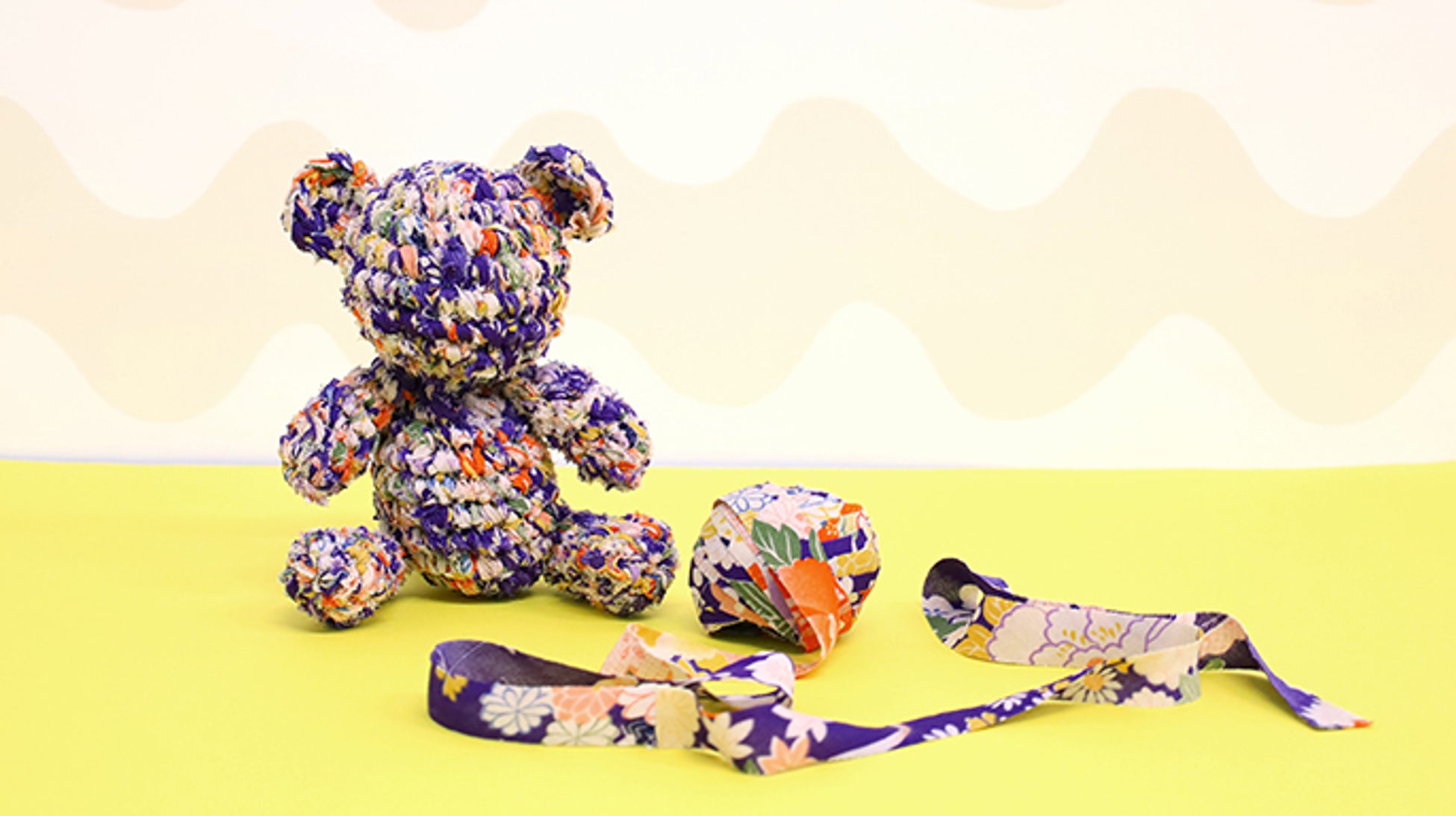 着物をアップサイクルした糸で作る、小さなクマのあみぐるみ手芸キット「ベアキット2種」