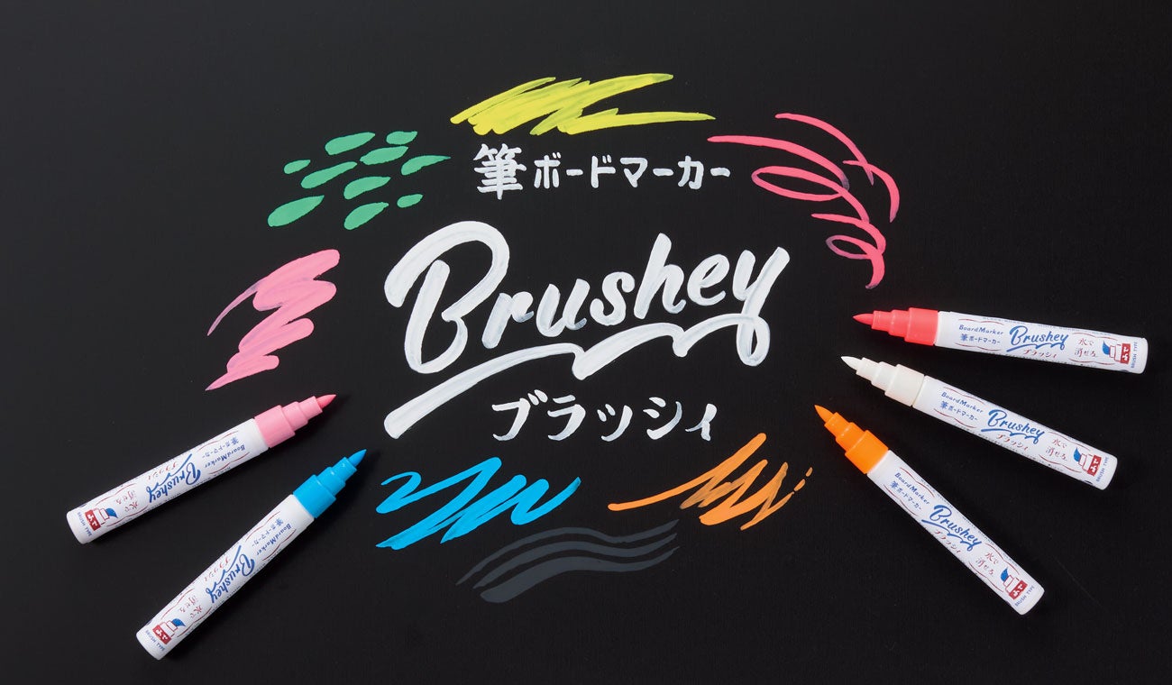 ブラックボード・ホワイトボード・ガラスなどにしなやかな筆文字が書ける「筆ボードマーカー ブラッシィ」を3月中旬に発売します。