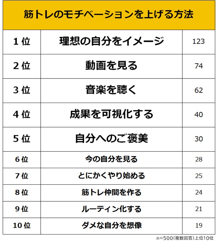 【筋トレのモチベーションを上げる方法ランキング】男女500人アンケート調査