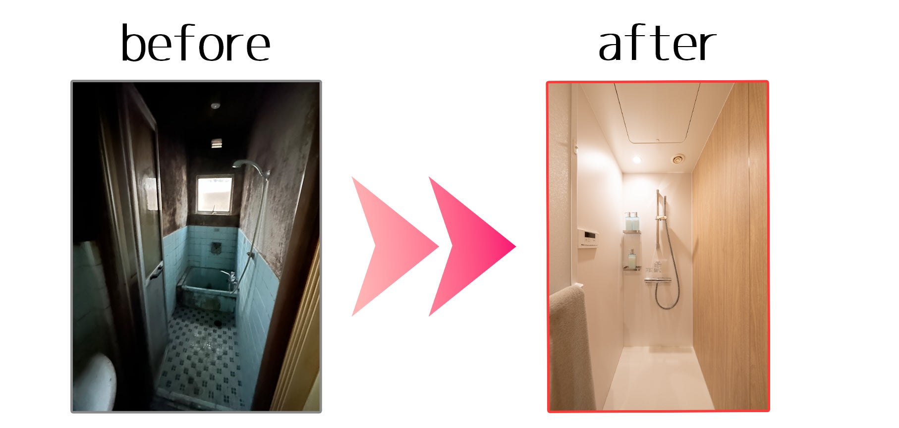 玄関・トイレ・キッチン・シャワー・リビングのBefore and Afterをどうぞ。