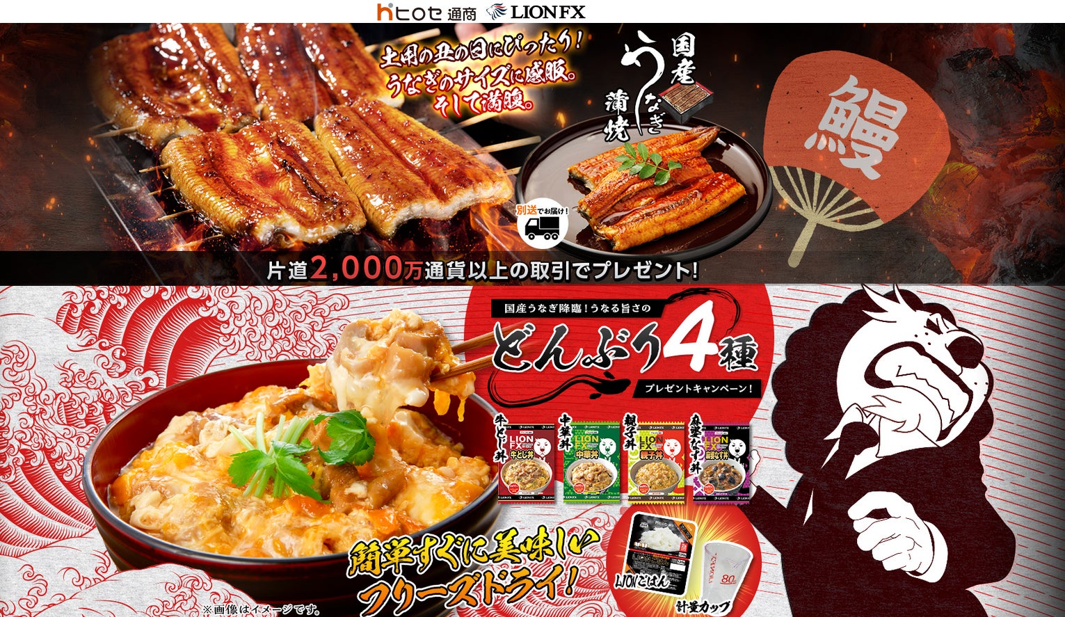 ヒロセ通商株式会社 (本社:大阪府西区、代表取締役:野市 裕作、以下:当社)は、当社の提供する「LION FX」において、2025年6月2日(月)より、「国産うなぎ降臨!うなる旨さのどんぶり4種プレゼントキャンペーン」を実施することをお知らせいたします。