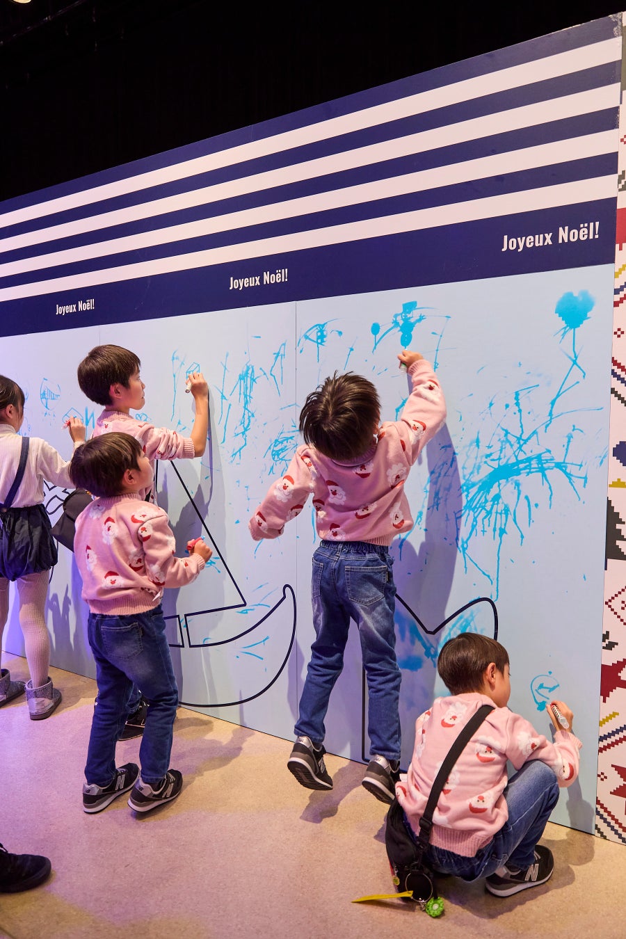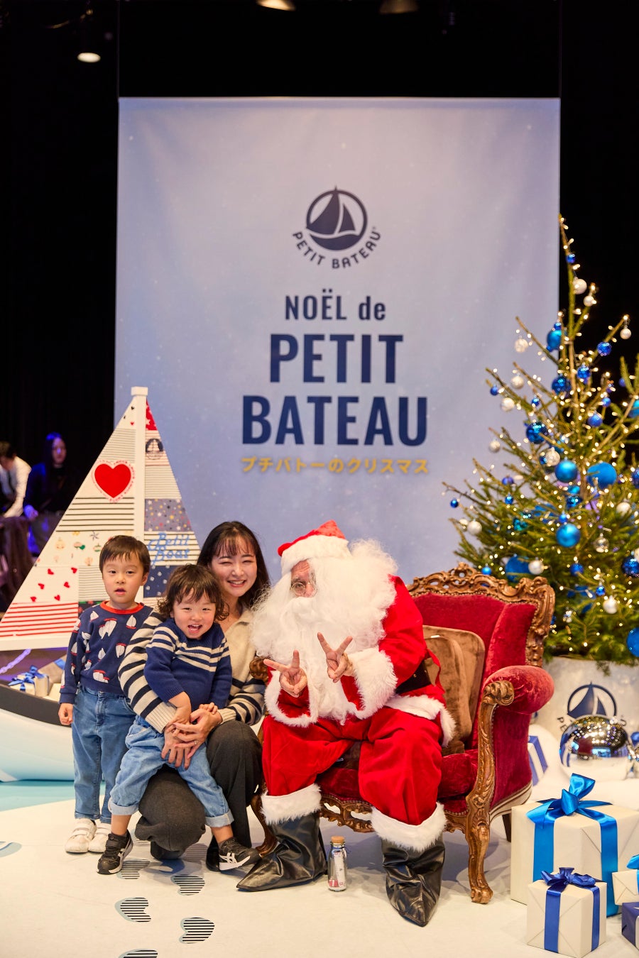 会場内は、ブランドの象徴であるボートをモチーフにした装飾や、クリスマスの旅をテーマにした演出で彩られ、訪れた瞬間からプチバトーの世界観を体感できる空間に。サンタクロースと一緒に写真が撮れるフォトスポットも設置され、家族の記念写真を残す来場者の姿が多く見られました。