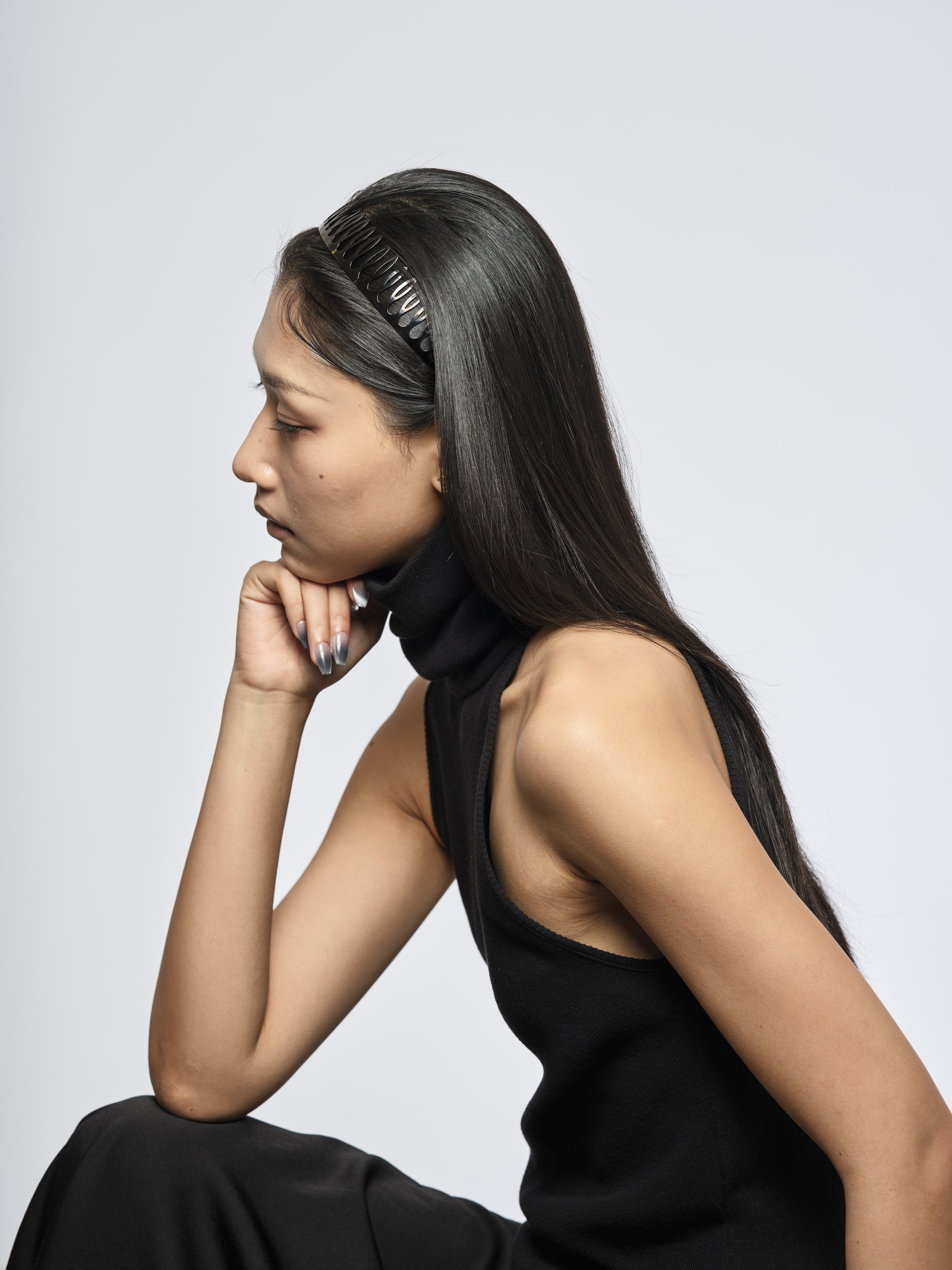 コームと一体化した独自デザインのフレームが内側から髪をしっかりと支え、毛流れの自然な表情を活かしたままスタイルをキープします。タイトに固めすぎず、ほどよく空気感を残したニュアンスでこなれ感のある仕上がりを実現。アップ、ダウンいずれのスタイルにも取り入れることができ、ボブやショートの方にもおすすめ。上質なベーシックの一つとしてデイリーに活躍するアイテムです。