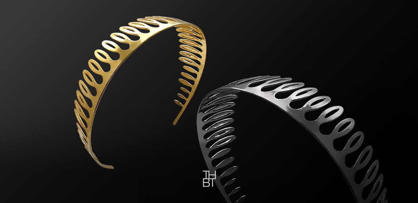 2026年2月10日(火)ヘッドバンドの概念が変わるといっても過言ではない、<THBT>が満を持してお届けする、メタルヘッドバンドが登場。完全オリジナルデザインで前髪をしっかりホールドできるよう、何度も工場と協議、改良を重ねました。実際に男性ユーザーにも検証実験をした実用性を誇るヘッドバンドは、機能性に劣らぬとデザイン性を兼ね備えています。真鍮製のため手の力で曲げる事もできるので、少しずつ調整しながらご自身の頭の形にフィットさせる事も可能です。通常のヘッドバンドでは不安定で落ちてきてしまうような方でも、細かいコームが髪をキャッチしてしっかりホールドします。何かに向き合うために下を向く作業の際のオールバックに。ここぞというときにキリリと額が出したいときに最適です。特徴的なコームの形はデザイナー手描きの筆記体「ℓ(エル)」から採用しているため、穴の位置も左右対称ではなく有機的な動きのあるデザインになっています。内側には「THBT」の刻印がされています。人の頭のカタチは千差万別。合わないヘッドバンドで苦労した経験のある、すべての方に、ストレスがない状態でヘッドバンドを楽しんで頂きたい願いを込めて、お届けします。