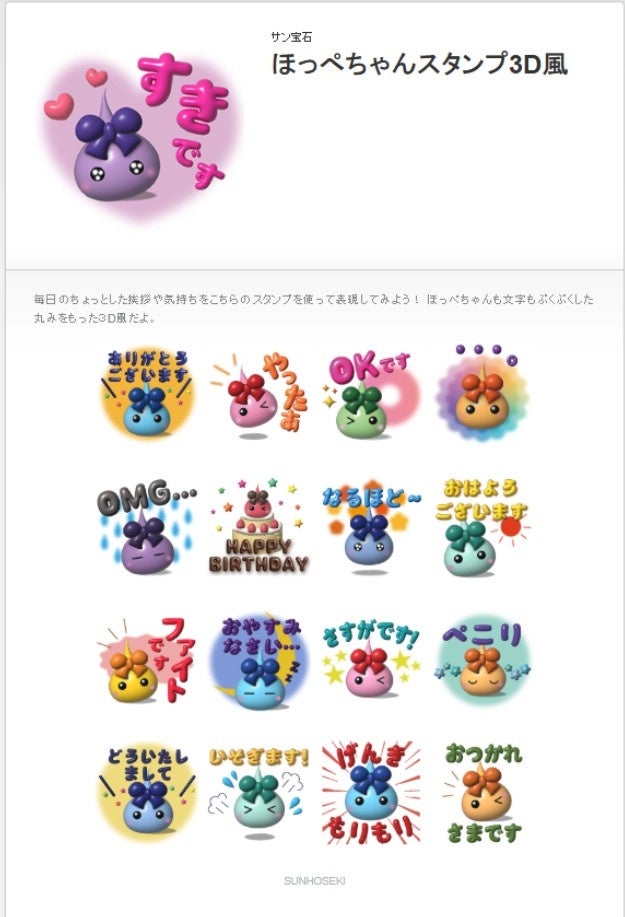サン宝石では、今回の「3D風スタンプ」発売を皮切りに、第2弾スタンプやアニメーション版、企業・キャラクターとのコラボスタンプの展開も予定。
