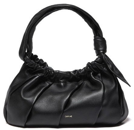 ボリュームのある折り目が特徴的なシルエットを生み出し、カジュアルでありながら洗練された柔らかさを持つデザインが特徴。柔らかなギャザーとテンションだけで形づくられた独特のフォルム。バターのように柔らかく光沢があるカウナッパレザーの折りたたみが、ユニークで豊かなふくらみを生み出し、自然なドレープを引き立てます。