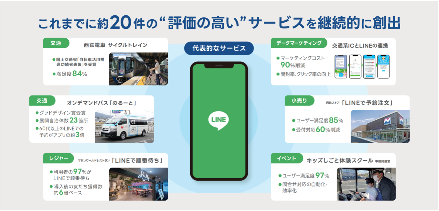 こうした取り組みにより、2021年の協定締結から約20件の新サービスを創出。西鉄グループにおけるLINEの活用は、グループ最大の顧客接点として地域住民・利用者・従業員の方から高く評価されています。
