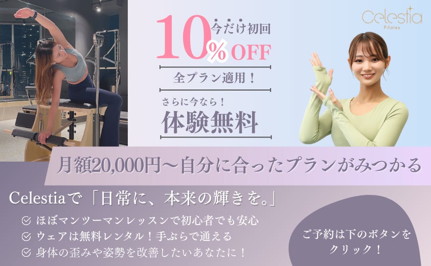 マシンピラティスを始めたい方、姿勢改善や痩せやすい身体を手に入れたい方、ぜひCelestiaでピラティスの楽しさを体験してください。お待ちしております!