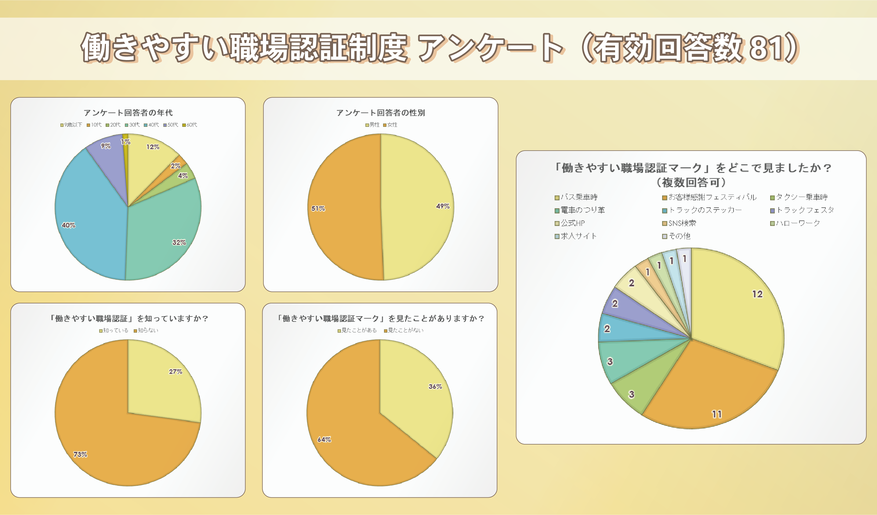 ブース来訪者に対して実施した「働きやすい職場認証」の認知度調査アンケートでは、81人から回答を得ました。