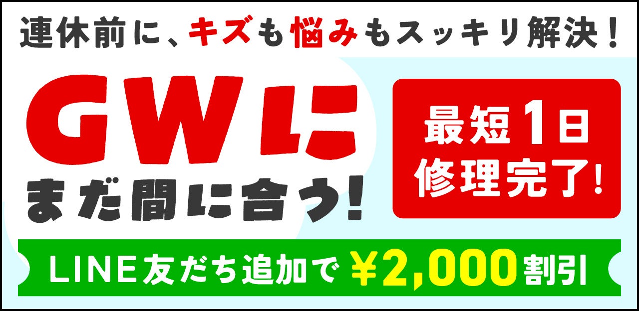 キズ修理をご検討いただいているお客様は、よりリーズナブルな金額で修理することが出来ますので、この機会にぜひ!