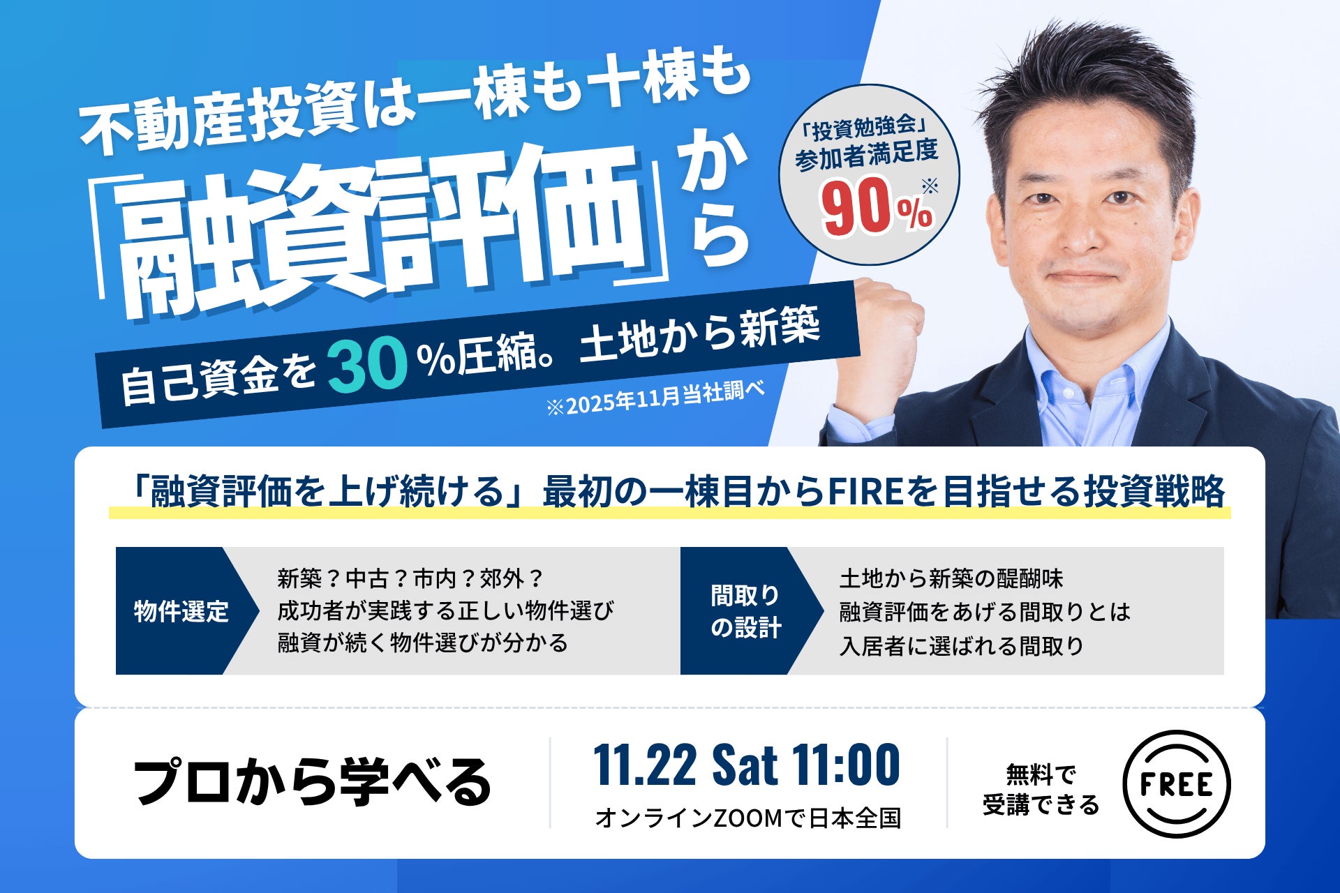 11/22開催!福岡の不動産投資でFIREを目指す。融資厳格化時代の今こそ知りたい。融資が続く人・止まる人の物件選びの違いとは?会社員でも5年で10棟FIREした現役投資家から学ぶ。
