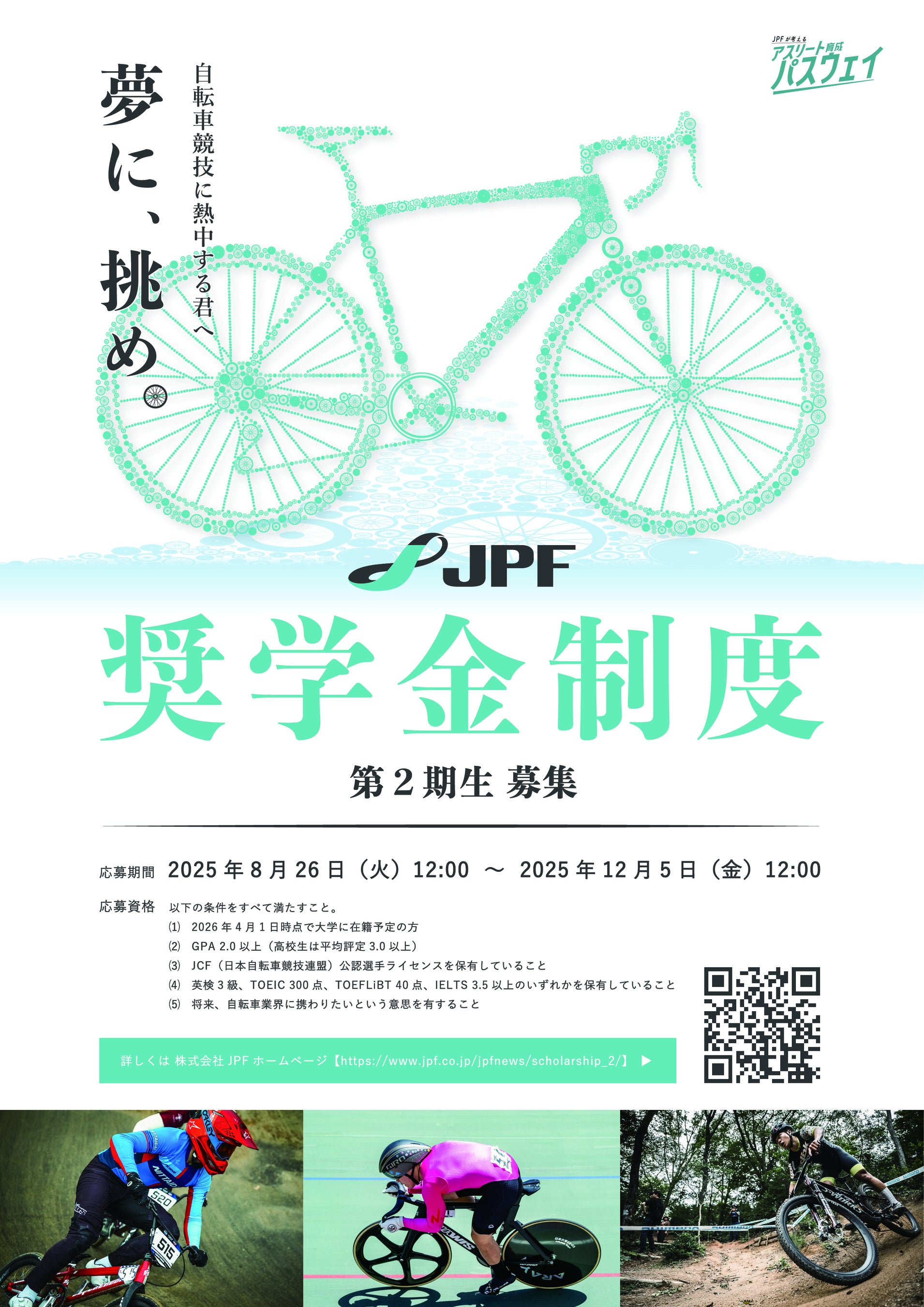 JPFは今後も本制度を通じて、自転車競技の発展と次世代人材の育成に取り組むとともに、スポーツを通じた社会的価値の創出を推進してまいります。