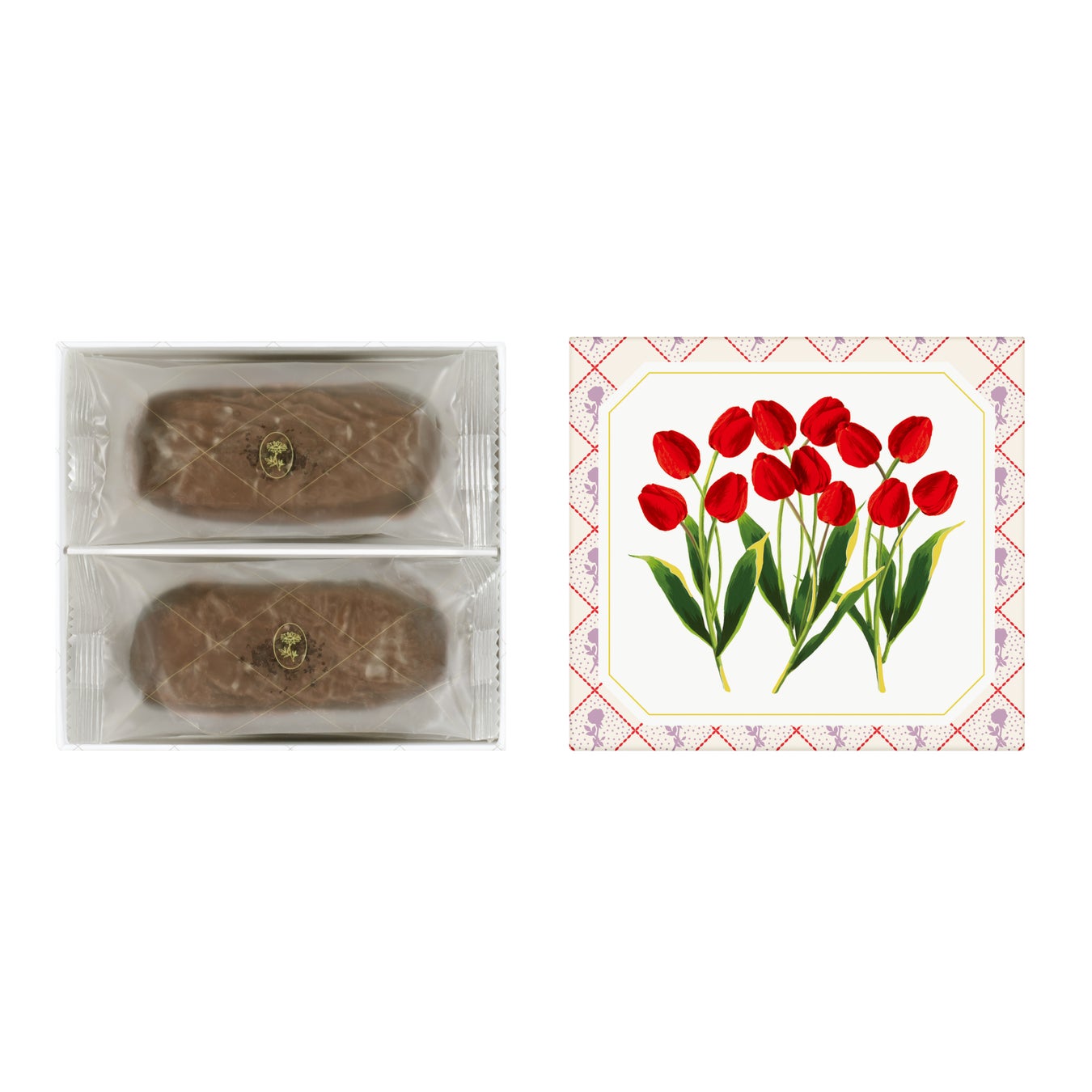 香ばしいアーモンドのパウダーを入れてくちどけよく焼き上げた生地に、コク深いキャラメルチョコレートを合わせました。 美味しさ際立つ素材感と優しい甘さにほっと心癒される味わいです。真っ白なうさぎと鮮やかなブルーのパンジーが描かれたピンクのパッケージは思わず目を引く可愛さです。