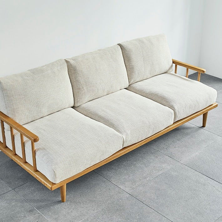 unicoの定番人気。木フレームが主役の北欧テイストで、細身の木脚+フレームの見えるデザインが特徴です。中古市場では需要が強く、状態が良いと安定して問い合わせが入ります。査定では、座面のヘタりやカバーの毛羽立ち・色褪せに加えて、フレームの打痕(角の欠け)が見られやすいです。クッションの状態が良く、カバーの手入れがされている個体は評価が上がりやすい傾向があります。