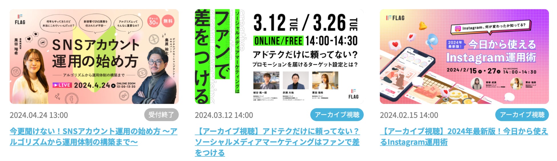 フラッグはマーケティングコミュニケーションの無料セミナーを定期開催しています!