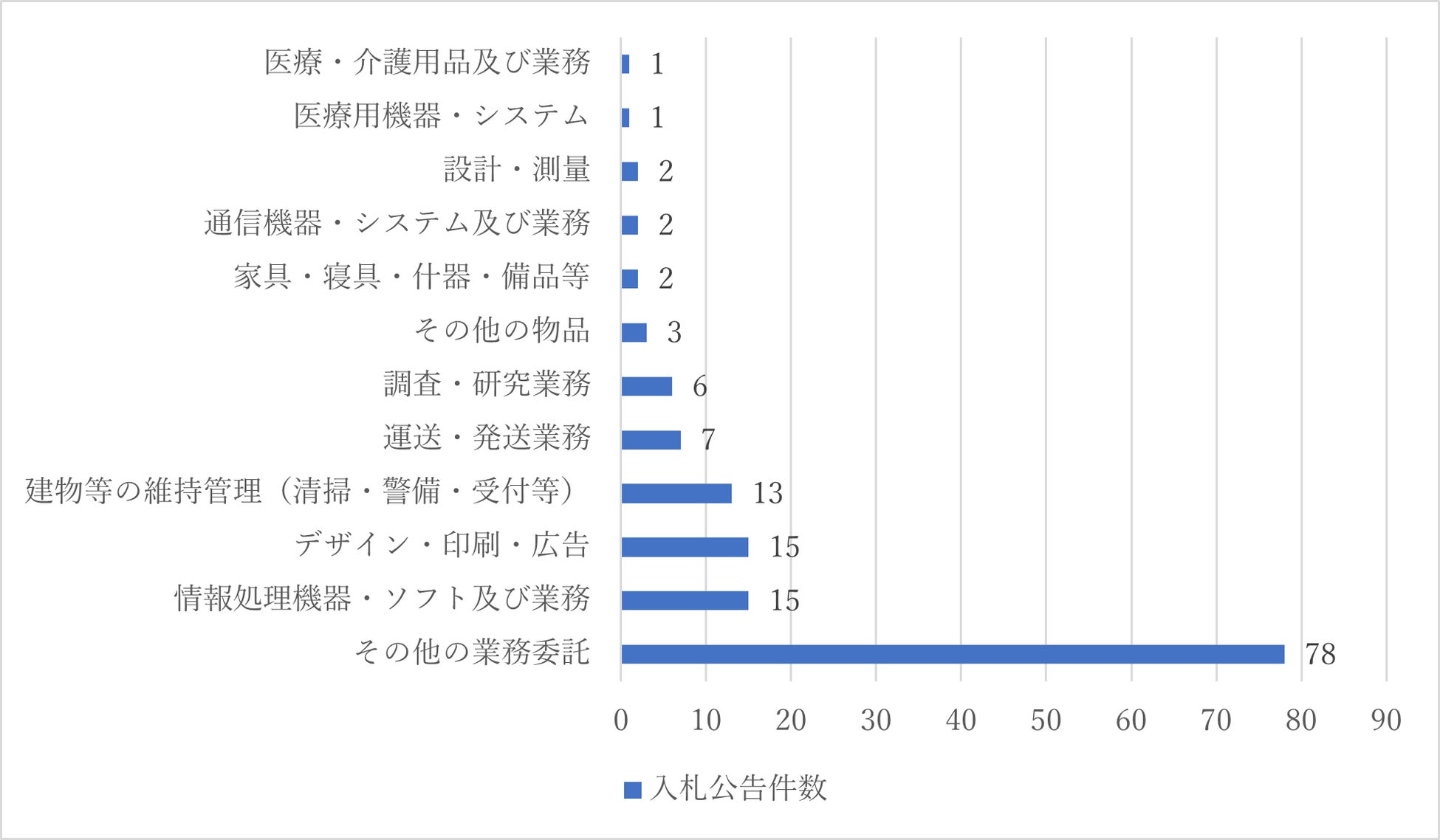 2,「物価高」の入札公告は業種カテゴリ「その他の業務委託」の案件が最多。