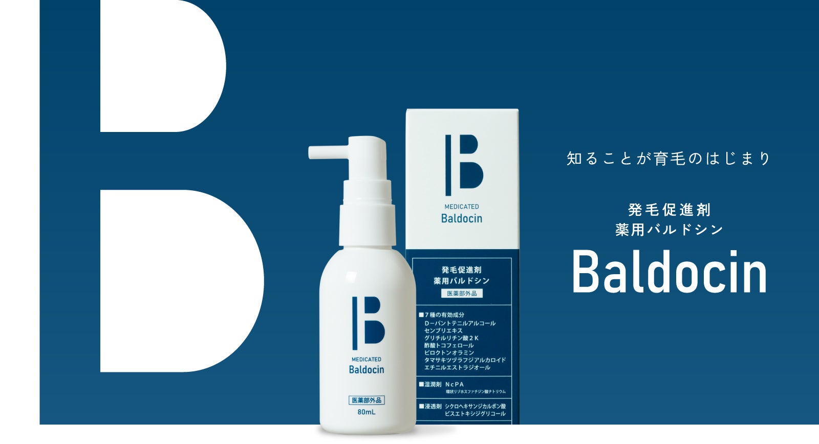 7種の有効成分を配合し、19種の植物エキスと生体での脂質のはたらきに着目し発見された成分「NcPA」を加えた発毛促進剤「Baldocin(バルドシン)」をEC限定商品として新発売(医薬部外品)