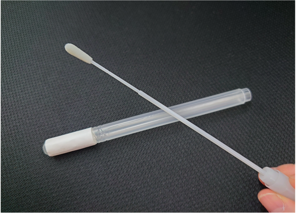 3. ご自身で採取:綿棒で口の中をこすって検体を採取します。