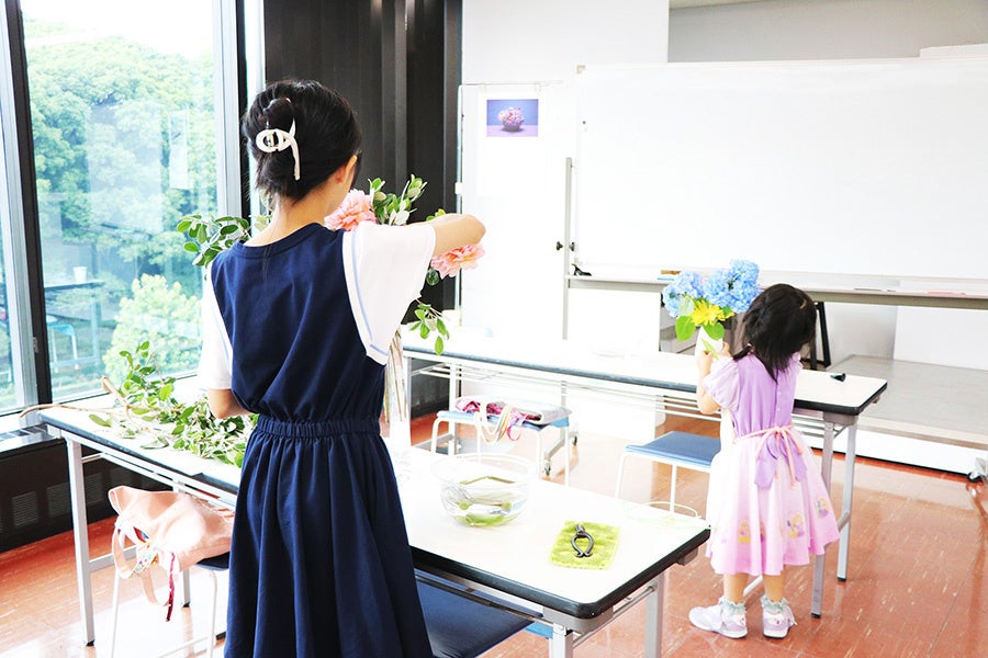 また、会期中の7月27日(日)には「いけばなワークショップ」も開催します。草月流のいけばなを体験しながら、自由に花をいける楽しさを味わえる機会です。いけばなに触れるのが初めての方にも表現する喜びを体験できる場となっています。
