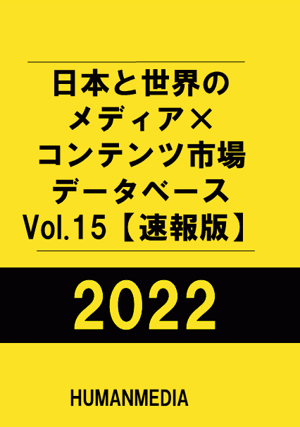 株式会社ヒューマンメディアが2021年の国内コンテンツ市場の規模を推計し、 これを掲載した「日本と世界のメディア×コンテンツ市場データベース2022 Vol.15【速報版】」を発刊。