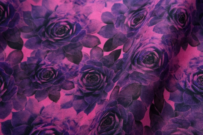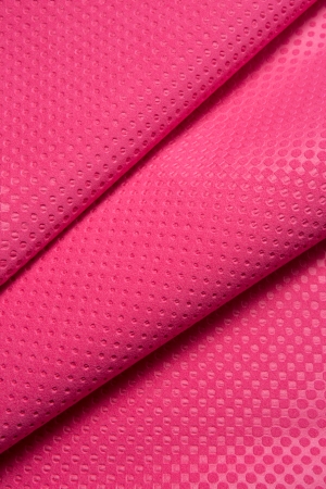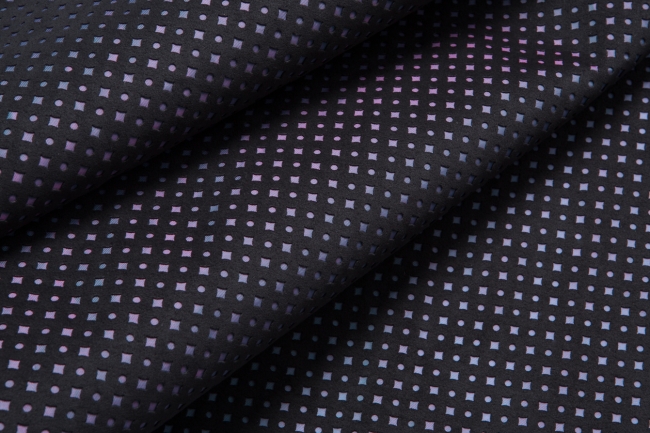 最初の目的地は日本の九州列島。このテーマでは特殊なインクを使ったプリント加工を施し、ピンク色が鮮やかになったりヴィヴィッドになったりと玉虫色効果を生み出しています。さらにメタリック糸の同系色の刺しゅうによりゴージャス感を演出、またプリントとエンボス加工の組み合わせによってグリーン、パープル、ブルーの水玉が表現されています。