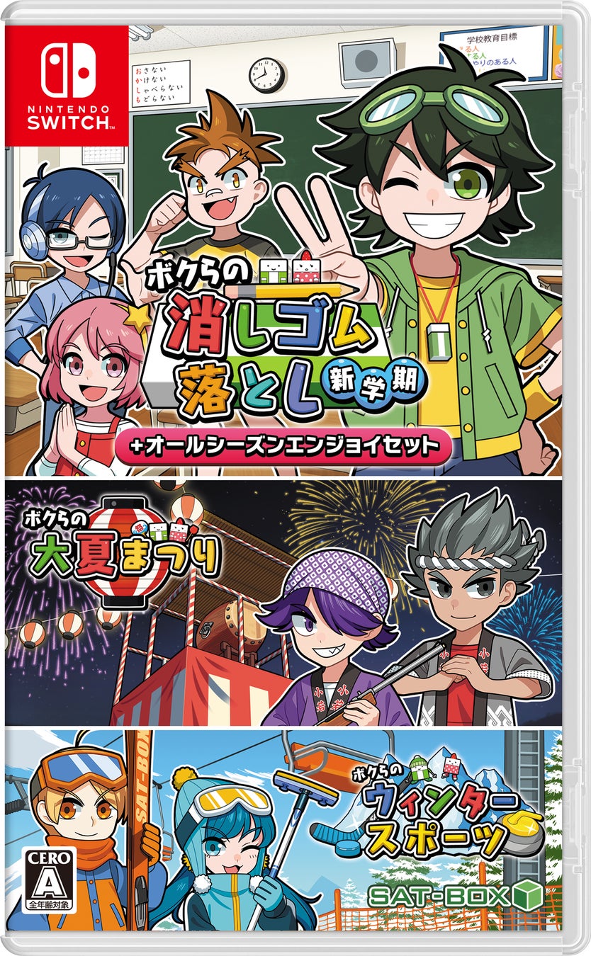 SAT-BOX株式会社はNintendo Switch用パッケージソフト【ボクらの消しゴム落とし新学期+オールシーズンエンジョイセット】の予約を開始いたしました。