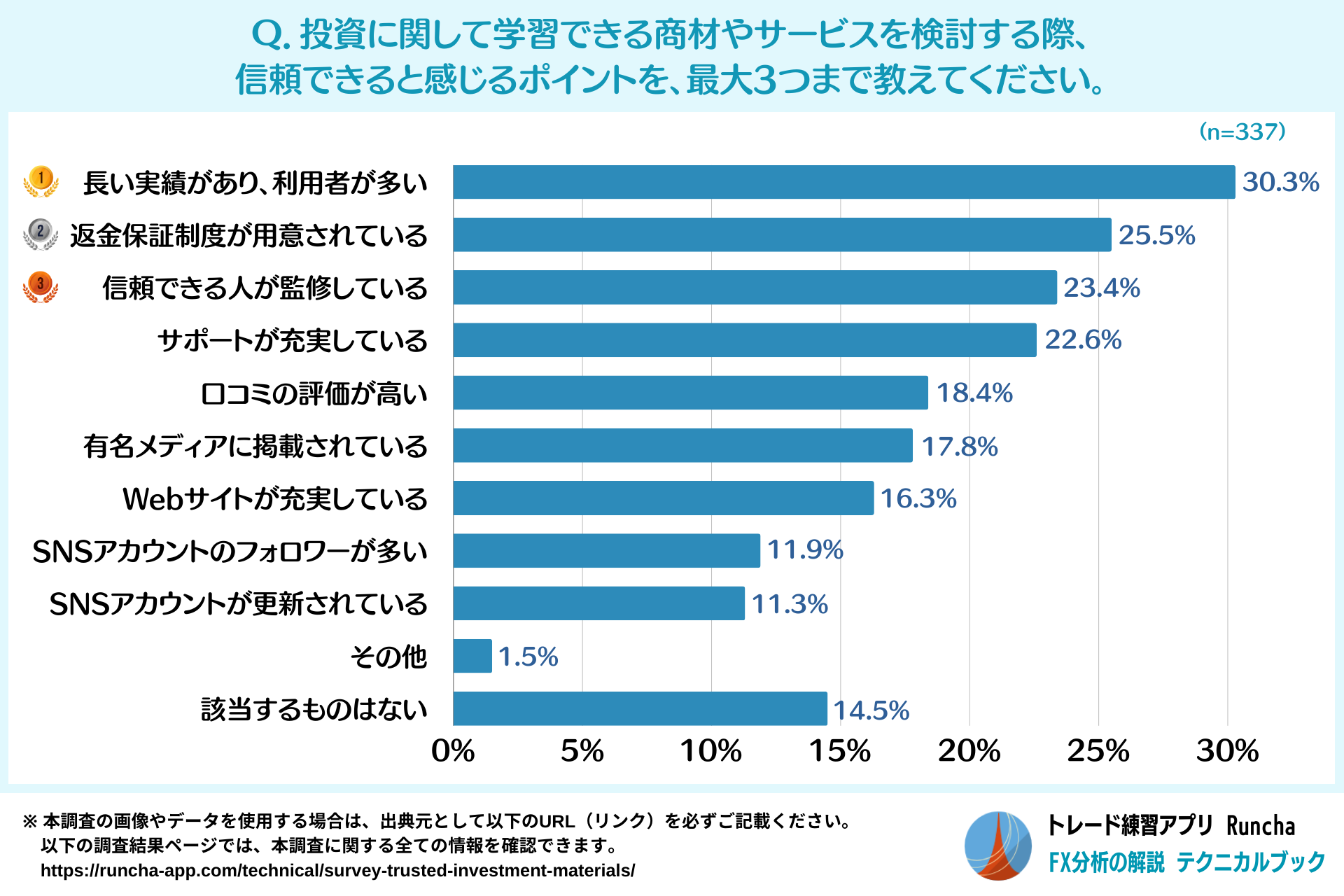 投資の学習教材は"量"より"質"!検討時は「サービスの実績」を重視する利用者が最も多い!