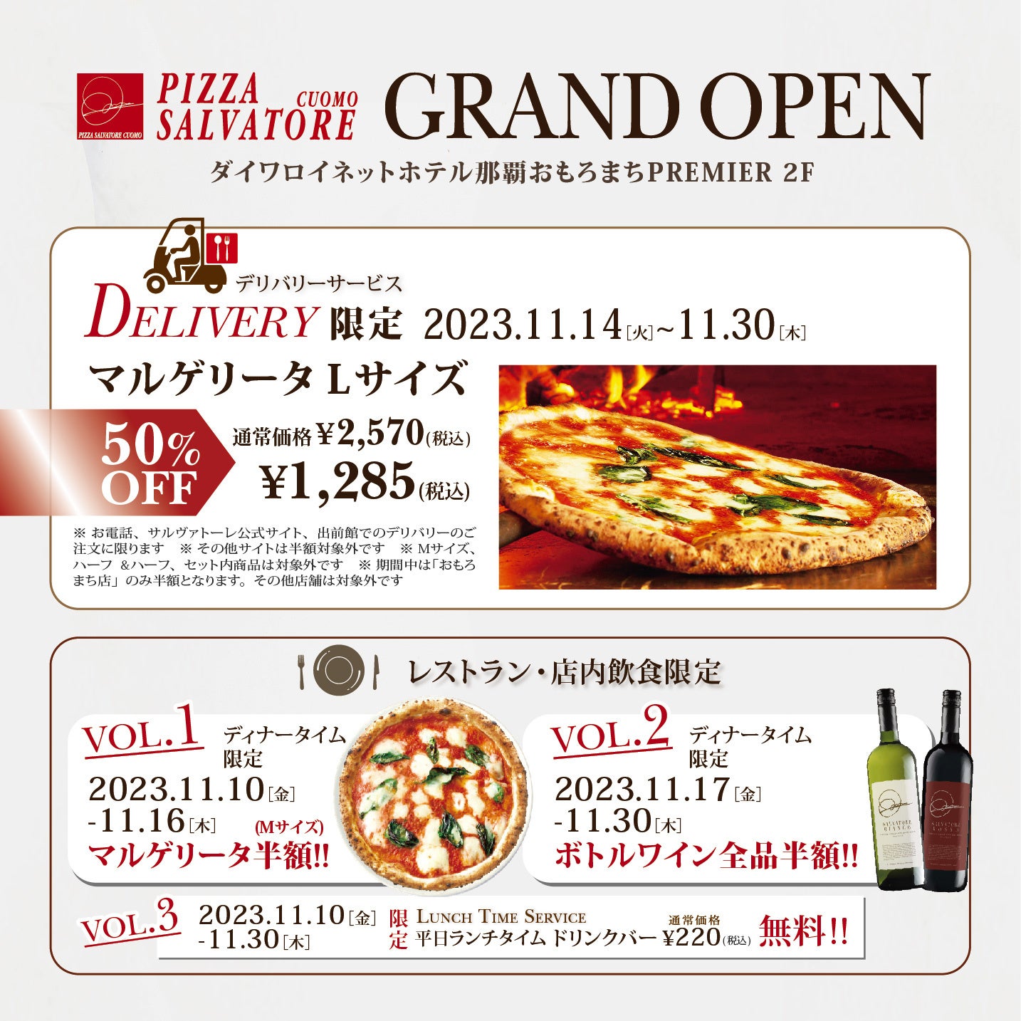 2023年11月10日(金)「PIZZA SALVATORE CUOMO おもろまち」GRAND OPEN!