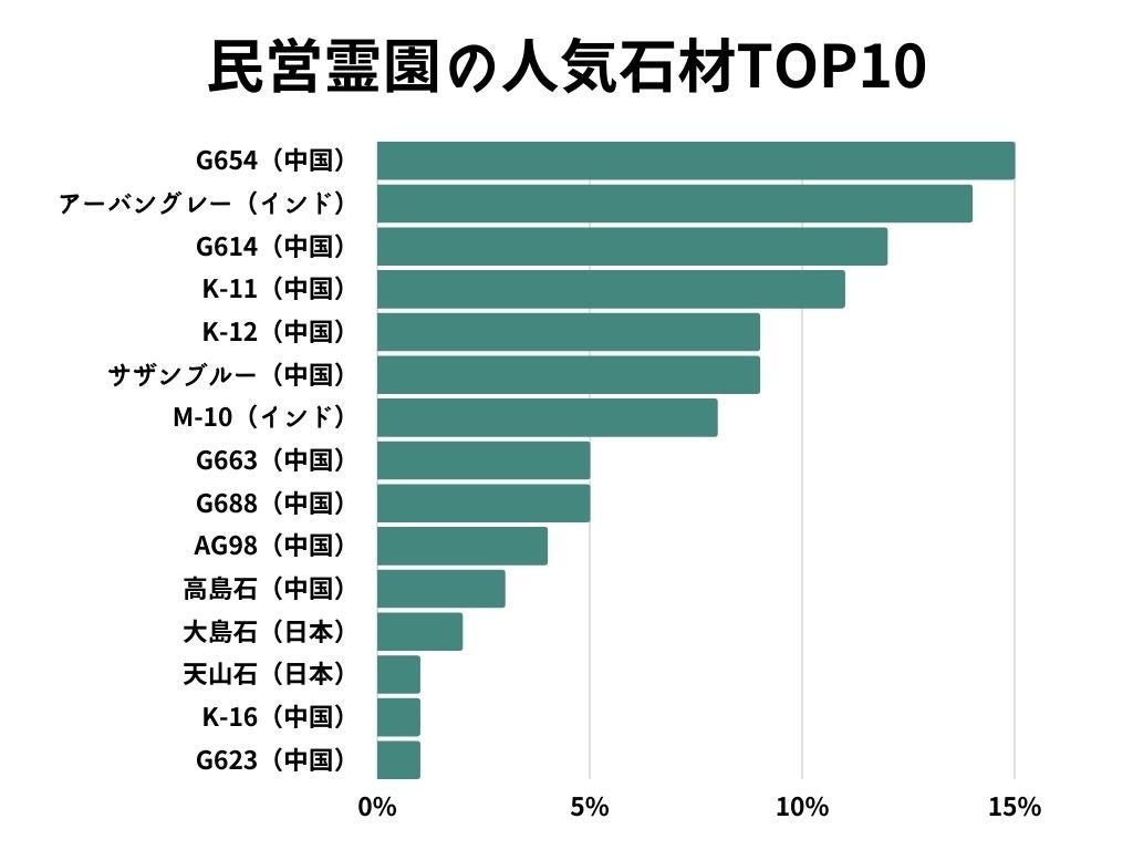 - 民営霊園の人気石材TOP10(寺院墓地を含む)
